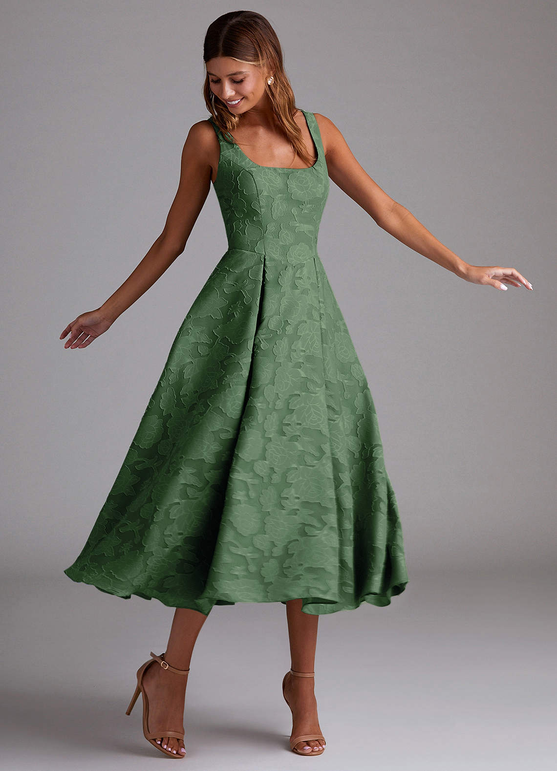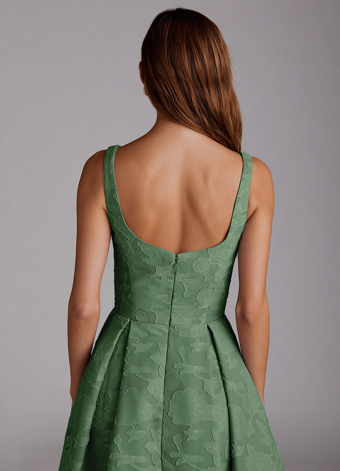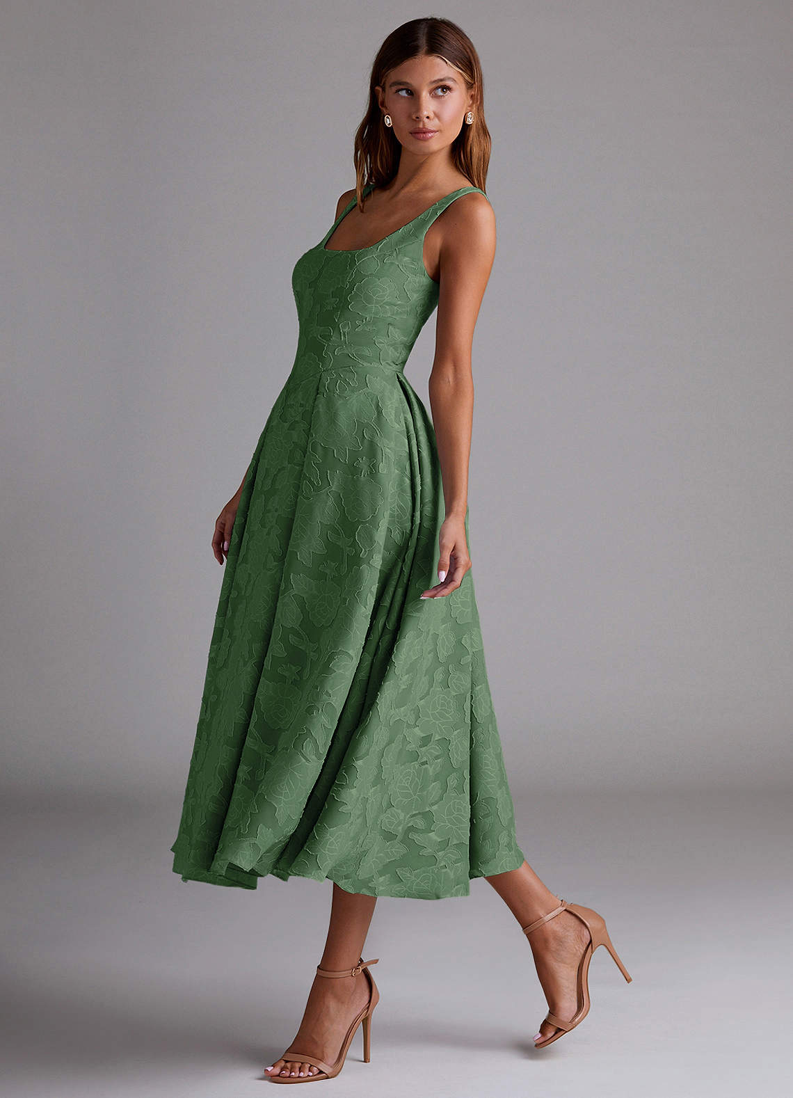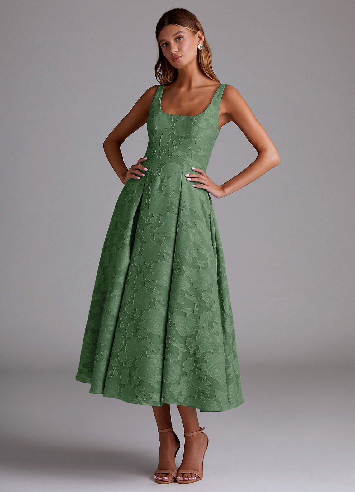 Adelie hat einen eleganten Rundhalsausschnitt und eine spitze Taille. Der plissierte A-Linien-Rock ist knielang und hat versteckte Taschen.