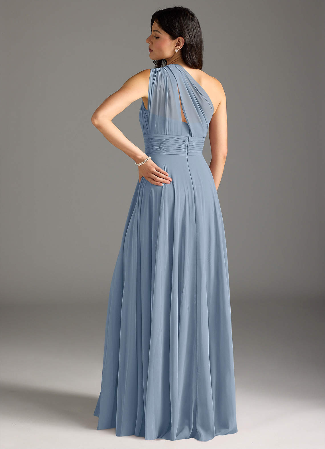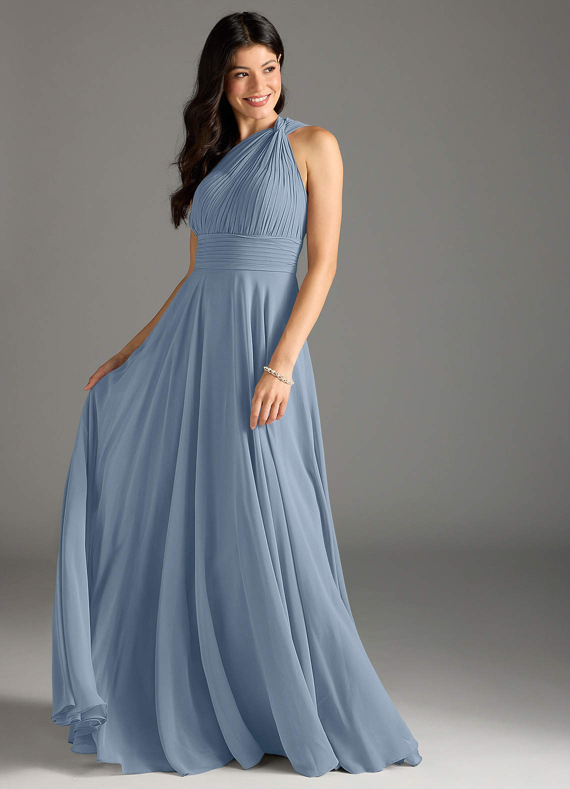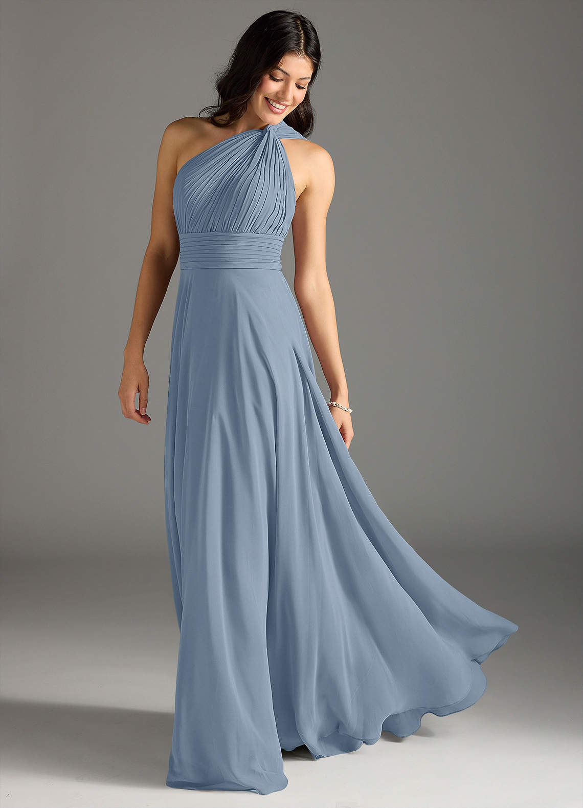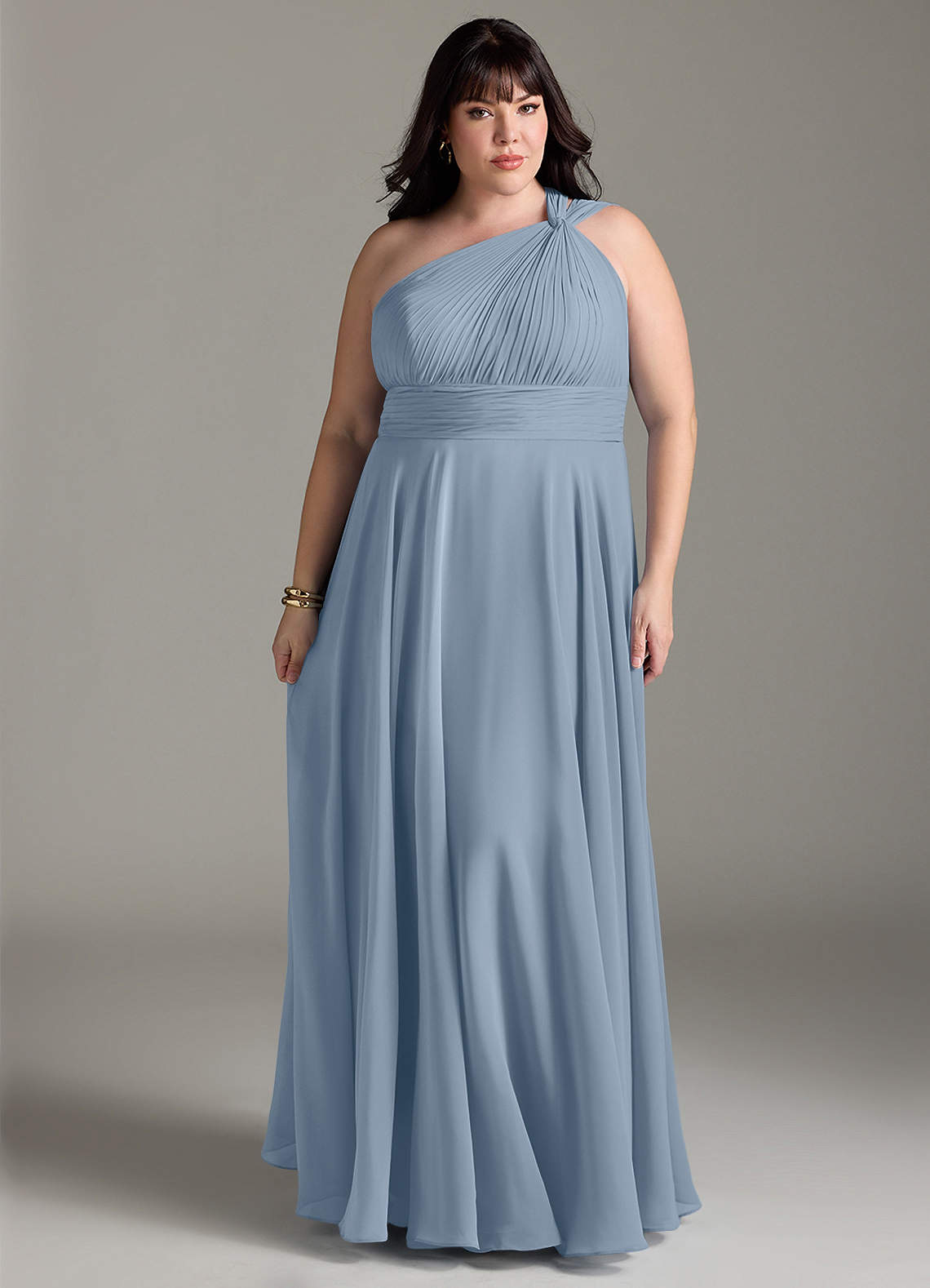 Mit Charlize werden Sie sich wie eine moderne griechische Göttin fühlen! Das asymmetrische Brautjungfernkleid zeichnet sich durch zart plissierte Einsätze und ein Schulterdetail mit gedrehten Knoten aus. Das strukturierte Oberteil ist wunderschön mit einem sanft gerafften A-Linien-Rock harmoniert, der allen Formen schmeichelt.