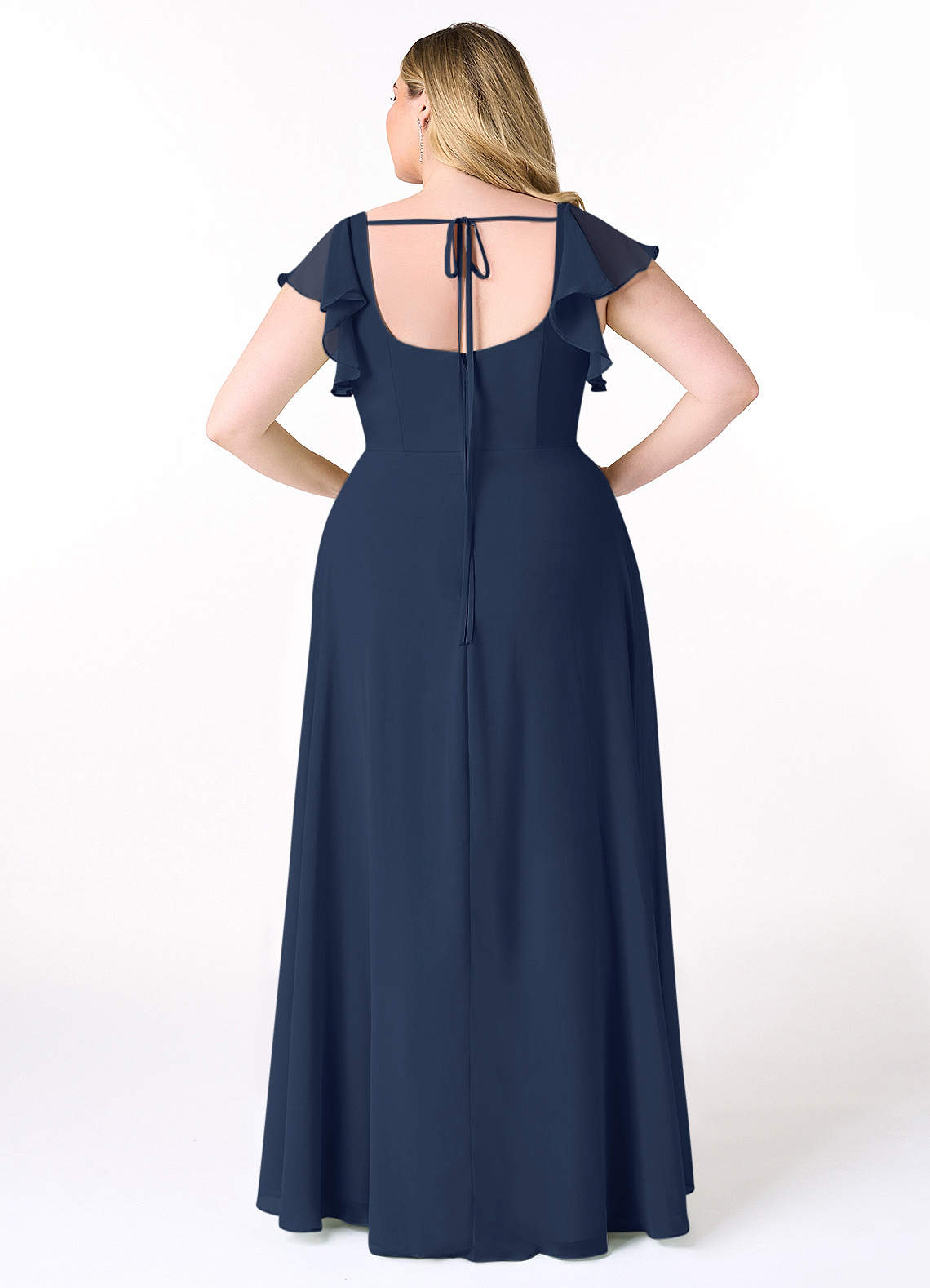 Bondi ist unser wunderschönes Brautjungfernkleid aus Chiffon. Sie hat einen eckigen Ausschnitt mit Flatterärmeln und einen Rundhalsausschnitt zum Binden. Abgerundet wird der Look durch einen Rock in A-Linie, gepaart mit einem Beinschlitz.