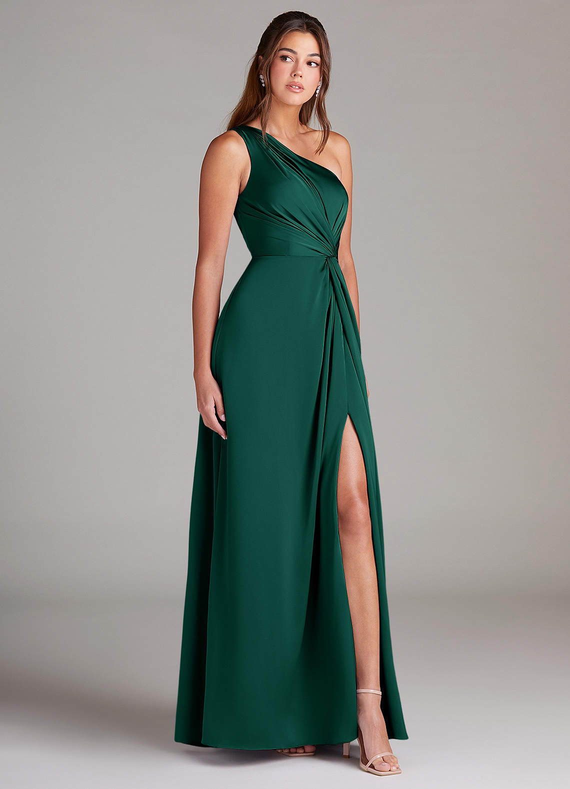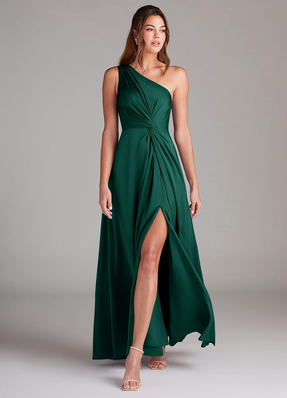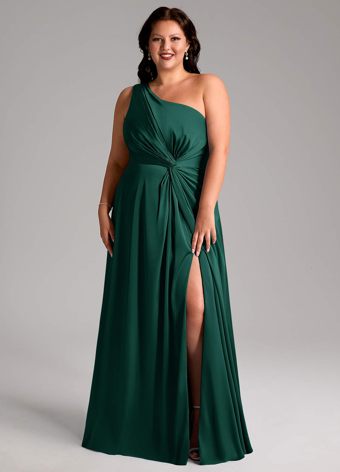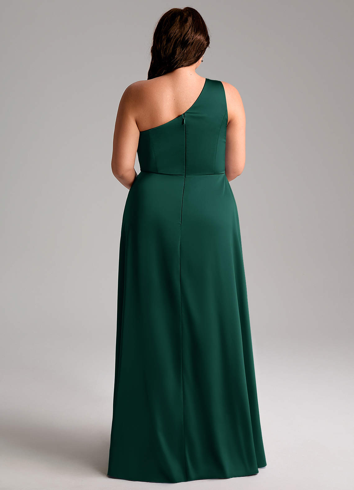 In Brooke sehen Sie aus wie eine moderne griechische Göttin. Dieses Brautjungfernkleid mit einer Schulter besteht aus schmeichelndem Stretch-Satin und verleiht Ihren Brautjungfern einen Look moderner Eleganz. Die Falten am Mieder und der seitliche Taillenknoten betonen die Taille und ein seitlicher Beinschlitz verleiht ihrem klassischen A-Linien-Rock eine verführerische Note.