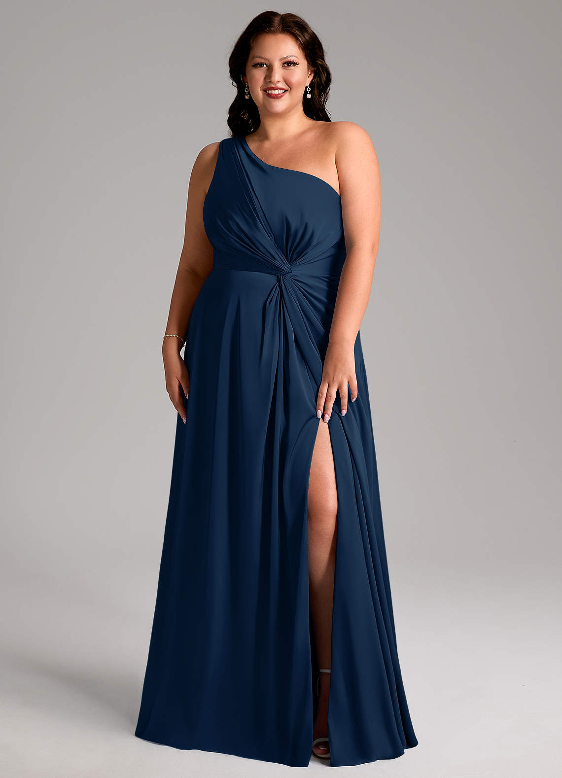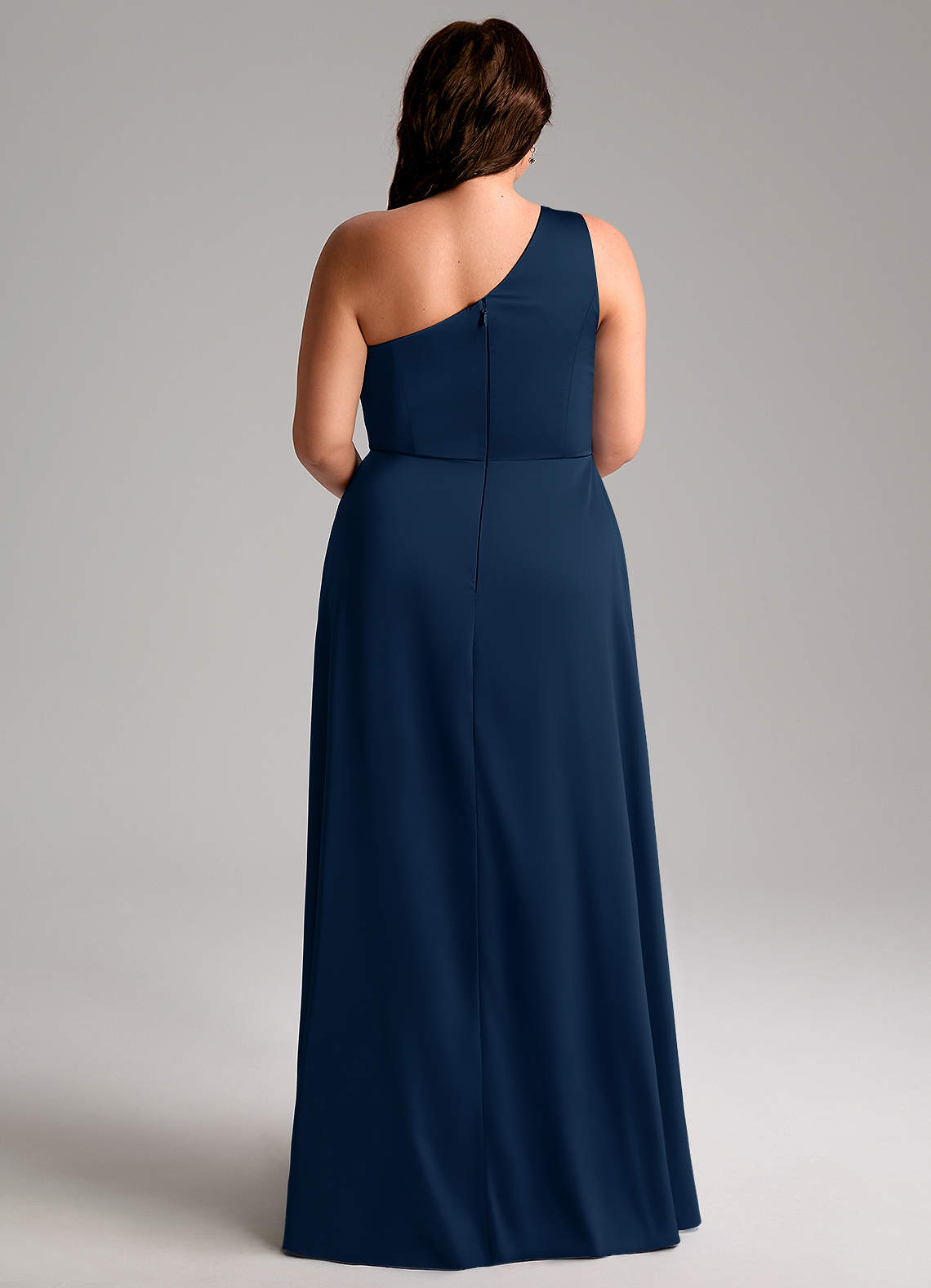 In Brooke sehen Sie aus wie eine moderne griechische Göttin. Dieses Brautjungfernkleid mit einer Schulter besteht aus schmeichelndem Stretch-Satin und verleiht Ihren Brautjungfern einen Look moderner Eleganz. Die Falten am Mieder und der seitliche Taillenknoten betonen die Taille und ein seitlicher Beinschlitz verleiht ihrem klassischen A-Linien-Rock eine verführerische Note.