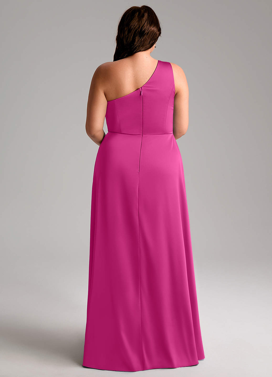 In Brooke sehen Sie aus wie eine moderne griechische Göttin. Dieses Brautjungfernkleid mit einer Schulter besteht aus schmeichelndem Stretch-Satin und verleiht Ihren Brautjungfern einen Look moderner Eleganz. Die Falten am Mieder und der seitliche Taillenknoten betonen die Taille und ein seitlicher Beinschlitz verleiht ihrem klassischen A-Linien-Rock eine verführerische Note.