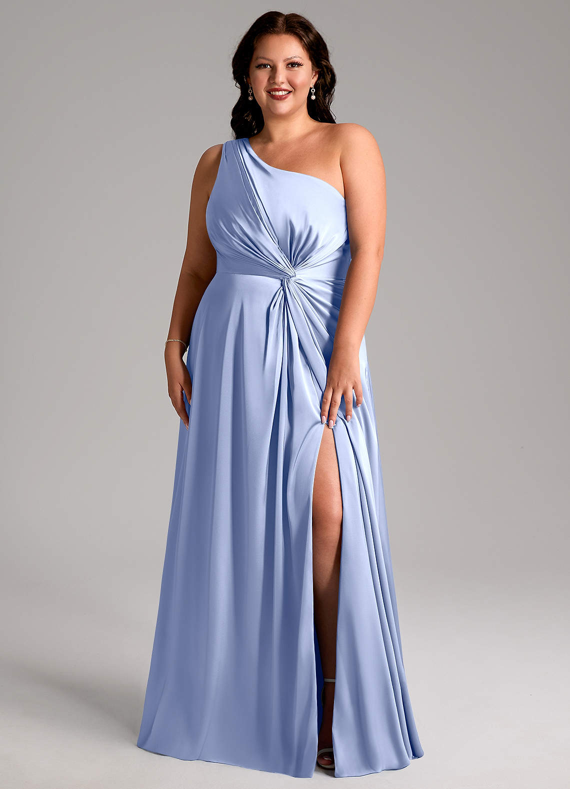 In Brooke sehen Sie aus wie eine moderne griechische Göttin. Dieses Brautjungfernkleid mit einer Schulter besteht aus schmeichelndem Stretch-Satin und verleiht Ihren Brautjungfern einen Look moderner Eleganz. Die Falten am Mieder und der seitliche Taillenknoten betonen die Taille und ein seitlicher Beinschlitz verleiht ihrem klassischen A-Linien-Rock eine verführerische Note.