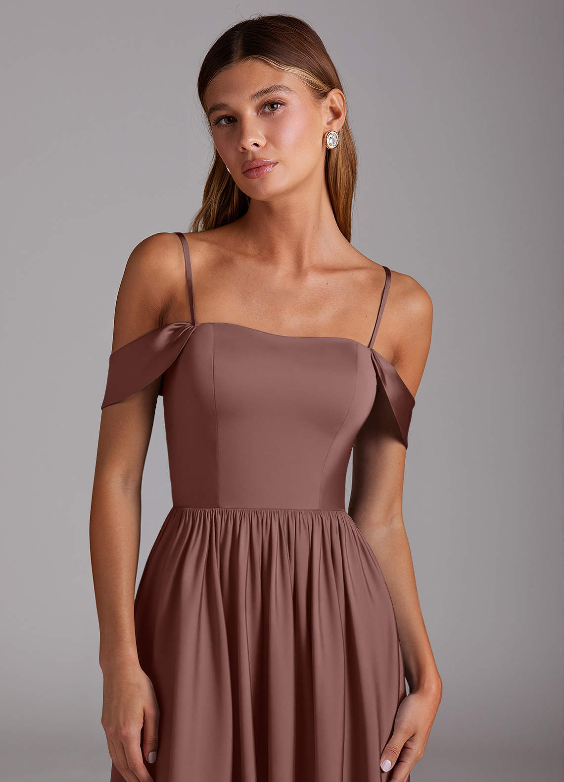 Das Calianna-Kleid ist mühelos schick und kombiniert eine elegante, schulterfreie Silhouette mit einem geraden Ausschnitt und einer schmeichelnden A-Linienform aus Stretch-Satin. Der Faltenrock mit einem koketten Beinschlitz schafft die perfekte Kombination aus Anmut und Weiblichkeit.