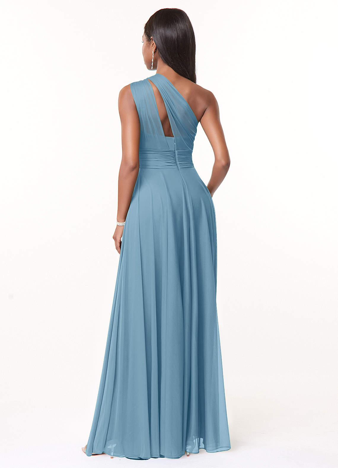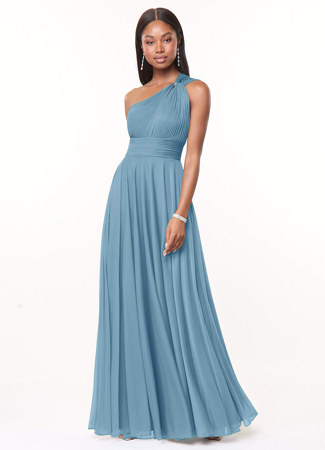 Mit Charlize fühlen Sie sich wie eine moderne griechische Göttin! Das asymmetrische Mieder hat zart plissierte Bahnen und ein verdrehtes Knotendetail an der Schulter. Das strukturierte Oberteil ist wunderschön ausbalanciert mit einem weich gerafften Rock in A-Linie, der allen Formen schmeichelt.