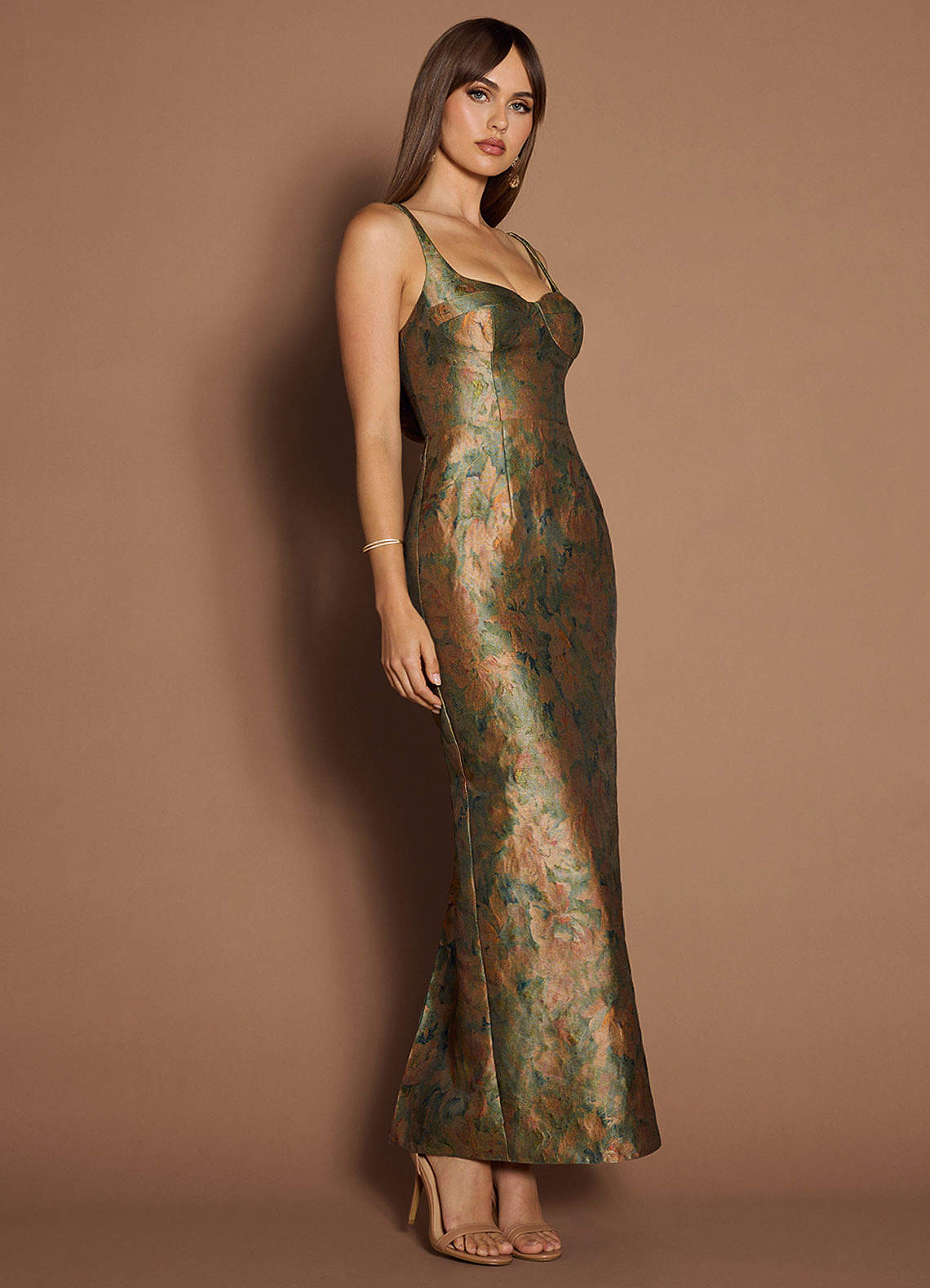 Mit dem Maxikleid Christy gehören Sie bei Ihrem nächsten besonderen Anlass zu den Bestdressed-Listen. Dieses wunderschöne Brokatkleid besticht durch einen romantischen Herzausschnitt, verstellbare Spaghettiträger und einen knöchellangen Etuirock mit Beinschlitz hinten. Christy ist das perfekte Kleid für eine Hochzeitsfeier oder ein gehobenes Event.