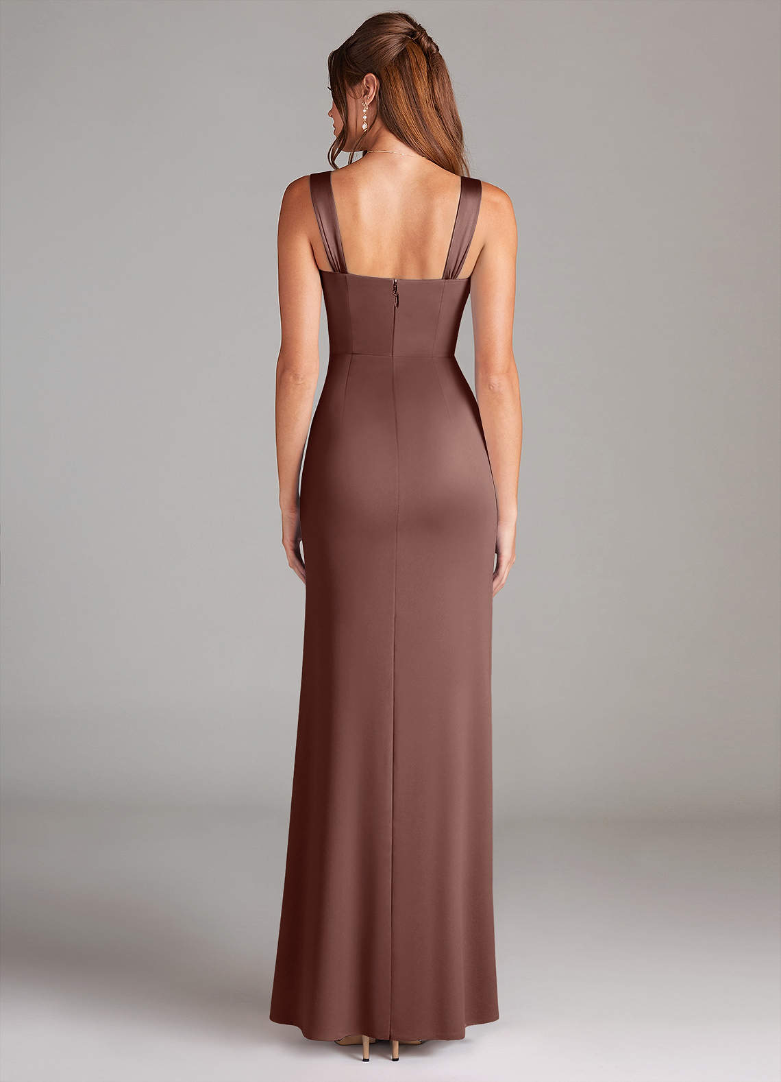 Das Brautjungfernkleid Denice vereint mühelos Eleganz und Komfort mit seiner schlanken, bodenlangen Etui-Silhouette aus luxuriösem Stretch-Satin. Mit seinem schmeichelhaften ärmellosen Design und einem schicken V-Ausschnitt verspricht dieses Kleid einen zeitlosen, anspruchsvollen Look für Ihren besonderen Tag.