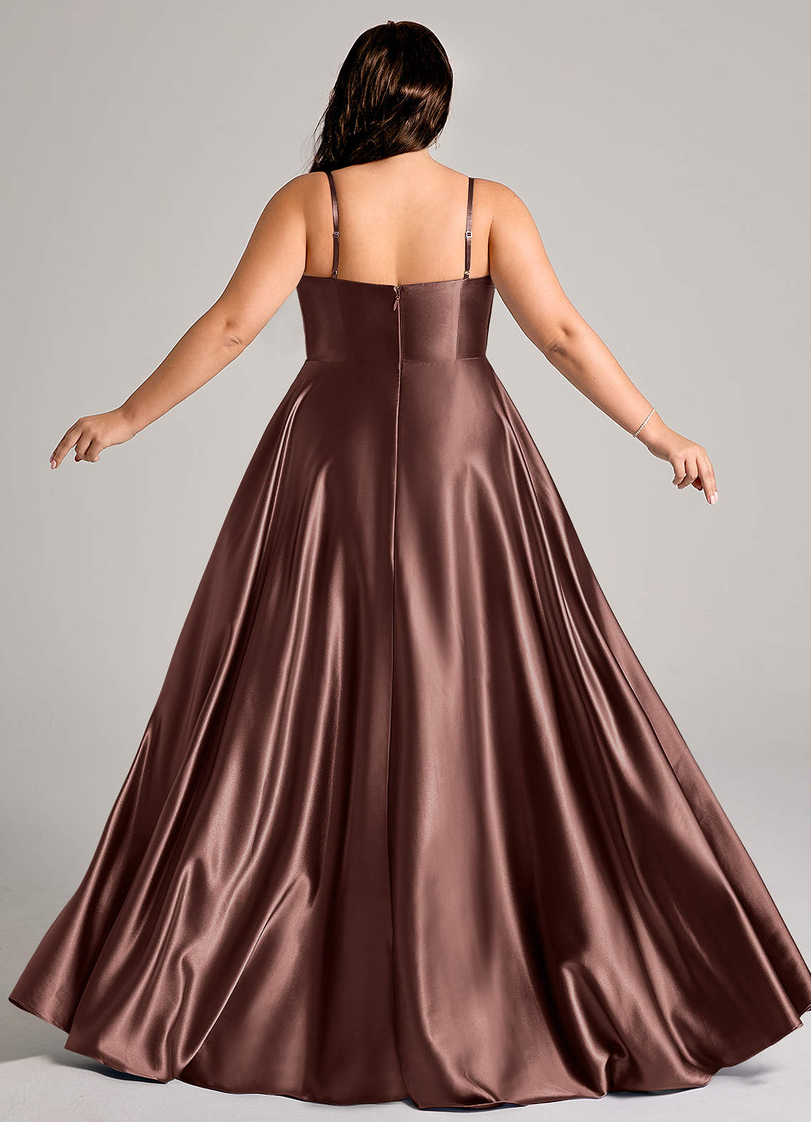 Ihre Brautjungfern werden in unseren A-Linien-Kleidern aus metallischem Satin, Elle, vor Schönheit strahlen. Ihr weicher Wasserfallausschnitt wird von zarten, verstellbaren Spaghettiträgern gehalten. Ihr weiter A-Linien-Rock verleiht einen Hauch von Erhabenheit, mit diskreten Taschen für praktische Zwecke und einem überlappenden Beinschlitz. Dieses Kleid ist eine perfekte Mischung aus Eleganz und Komfort und zugleich zeitlos und mühelos schick.