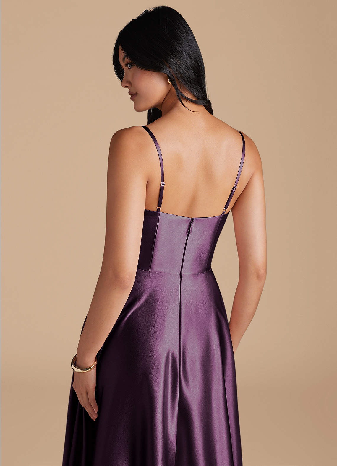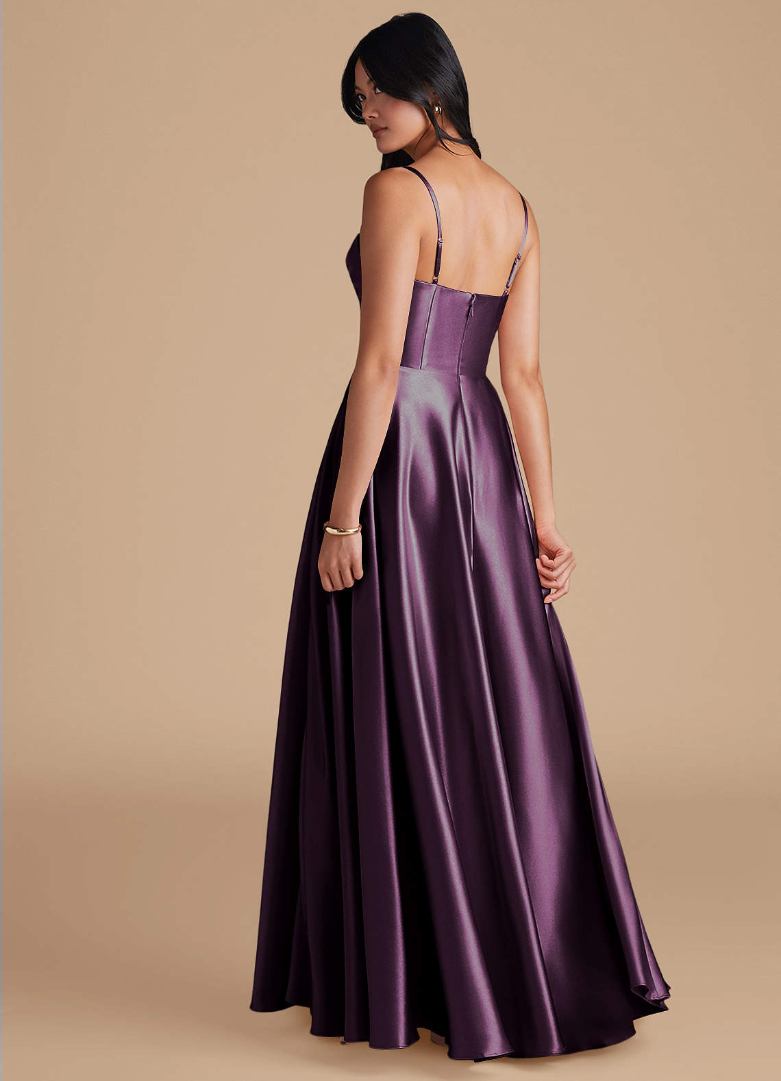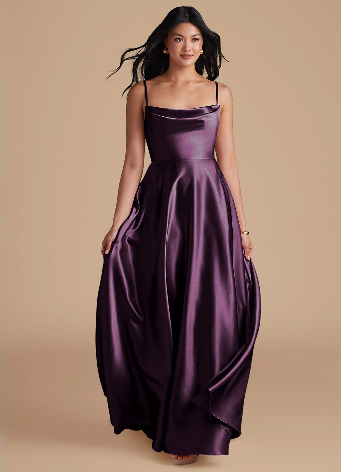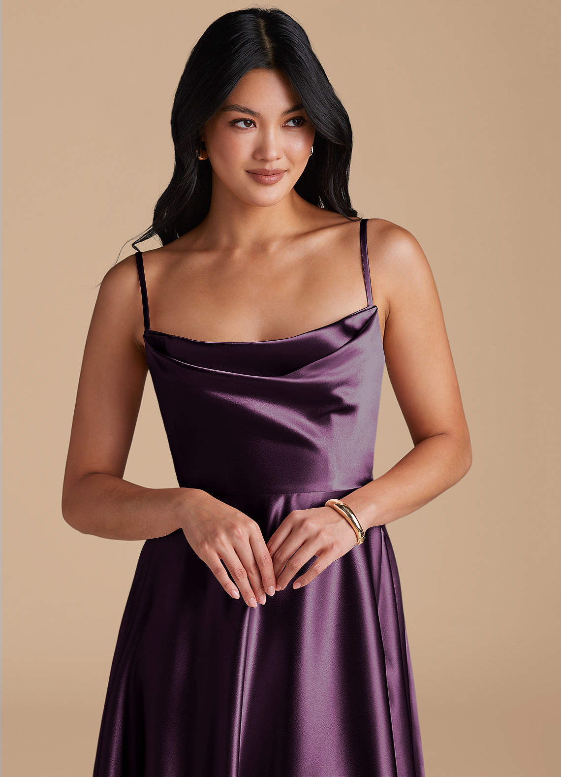 Ihre Brautjungfern werden in unseren A-Linien-Kleidern aus metallischem Satin, Elle, vor Schönheit strahlen. Ihr weicher Wasserfallausschnitt wird von zarten, verstellbaren Spaghettiträgern gehalten. Ihr weiter A-Linien-Rock verleiht einen Hauch von Erhabenheit, mit diskreten Taschen für praktische Zwecke und einem überlappenden Beinschlitz. Dieses Kleid ist eine perfekte Mischung aus Eleganz und Komfort und zugleich zeitlos und mühelos schick.