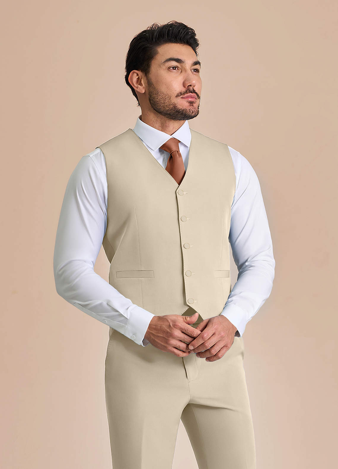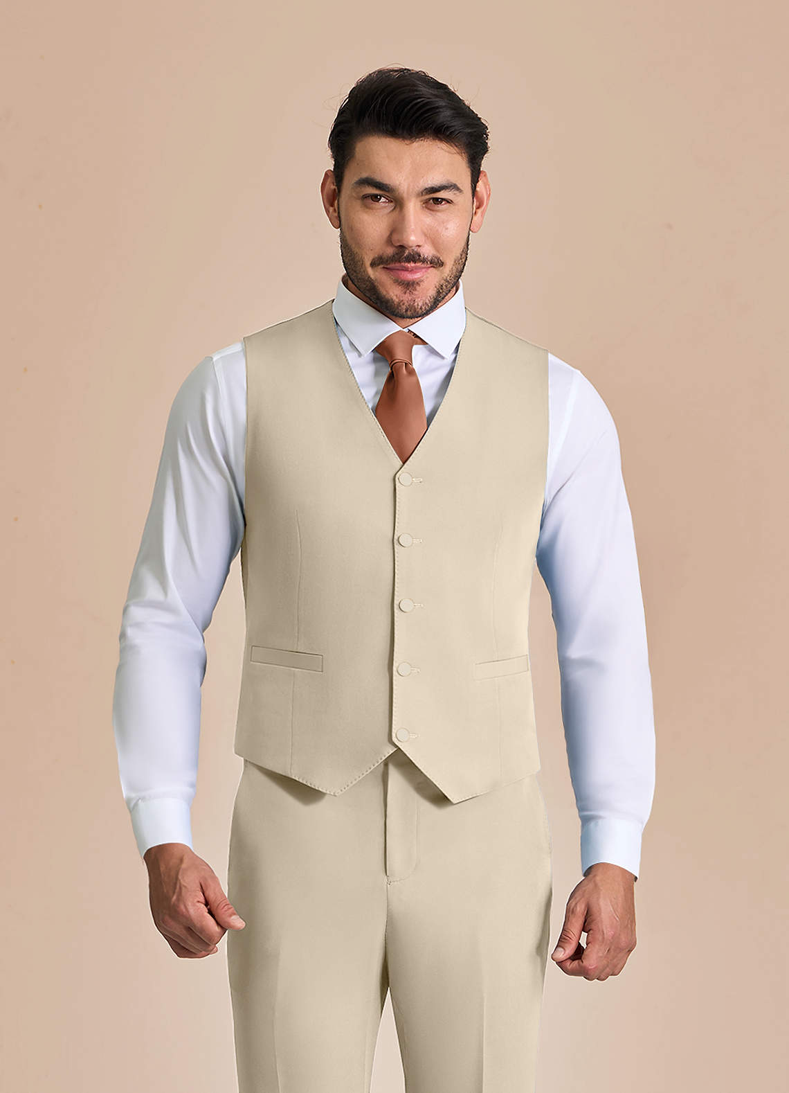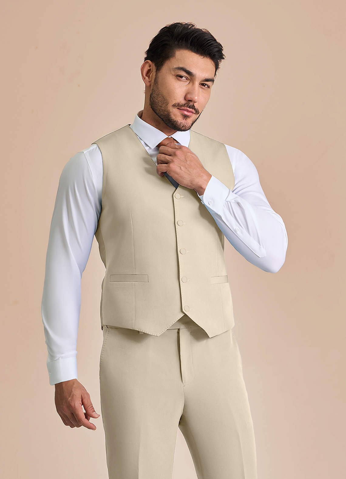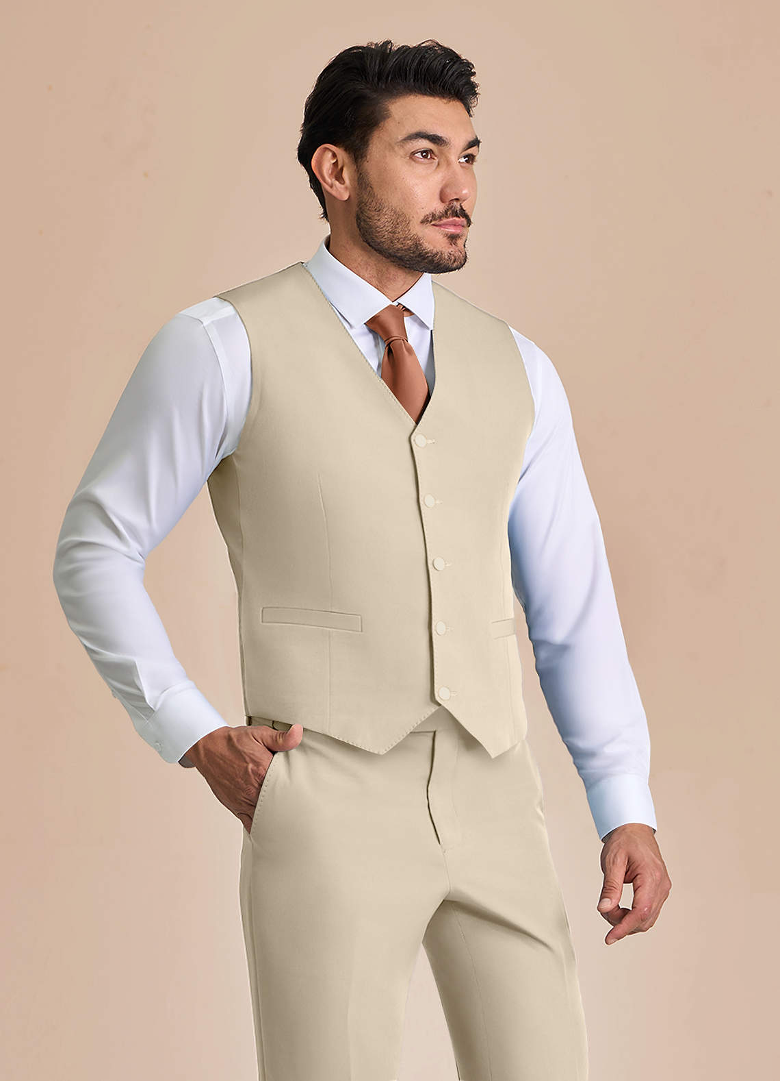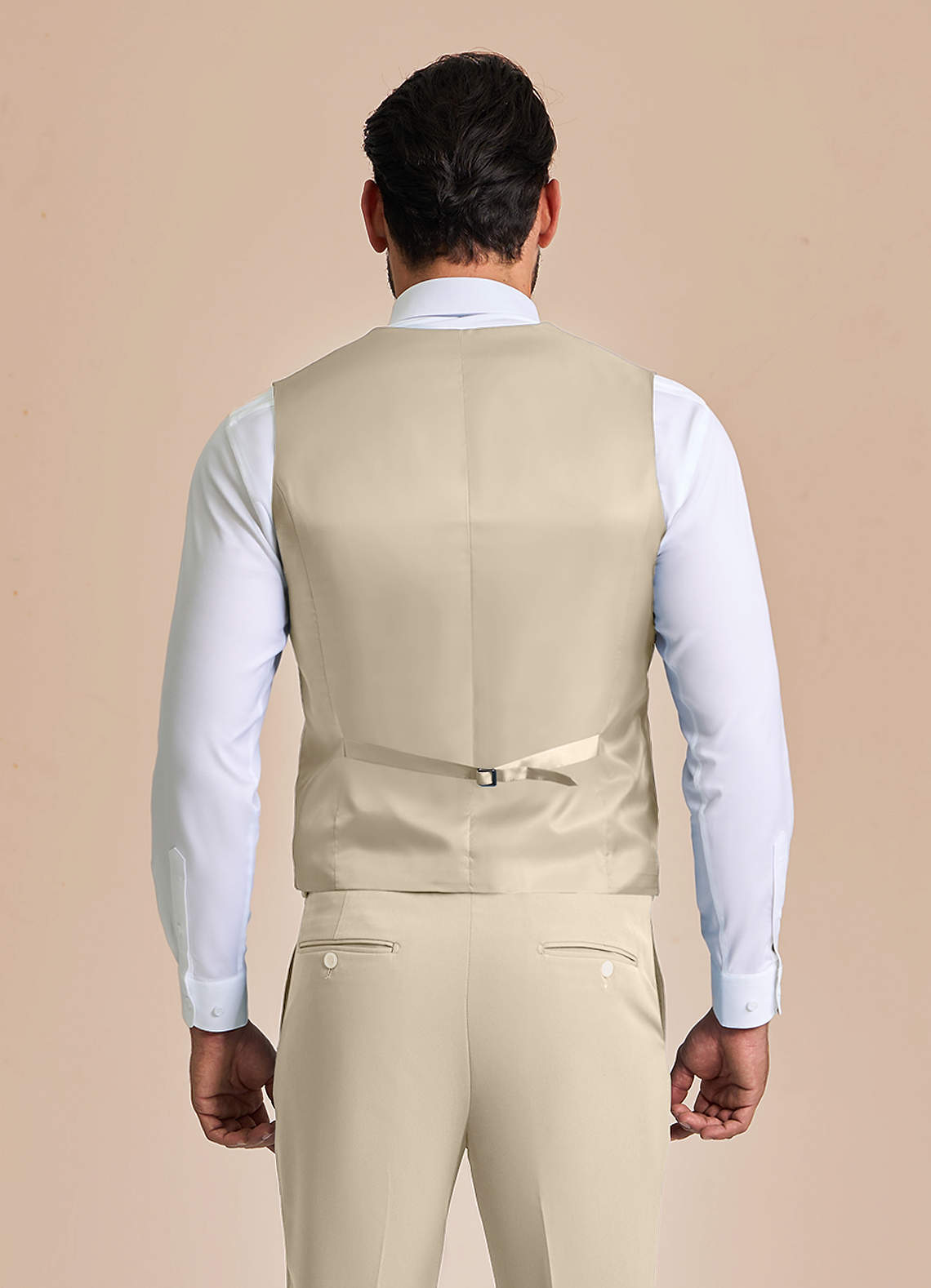 Diese Weste mit fünf Knöpfen ist mit einem verstellbaren Rückengurt und praktischen Taschen ausgestattet. Sie besteht aus unserem knitterfreien Structured Stretch-Material und ist elegant und bequem, sodass sie die ganze Nacht über ihre Form behält.