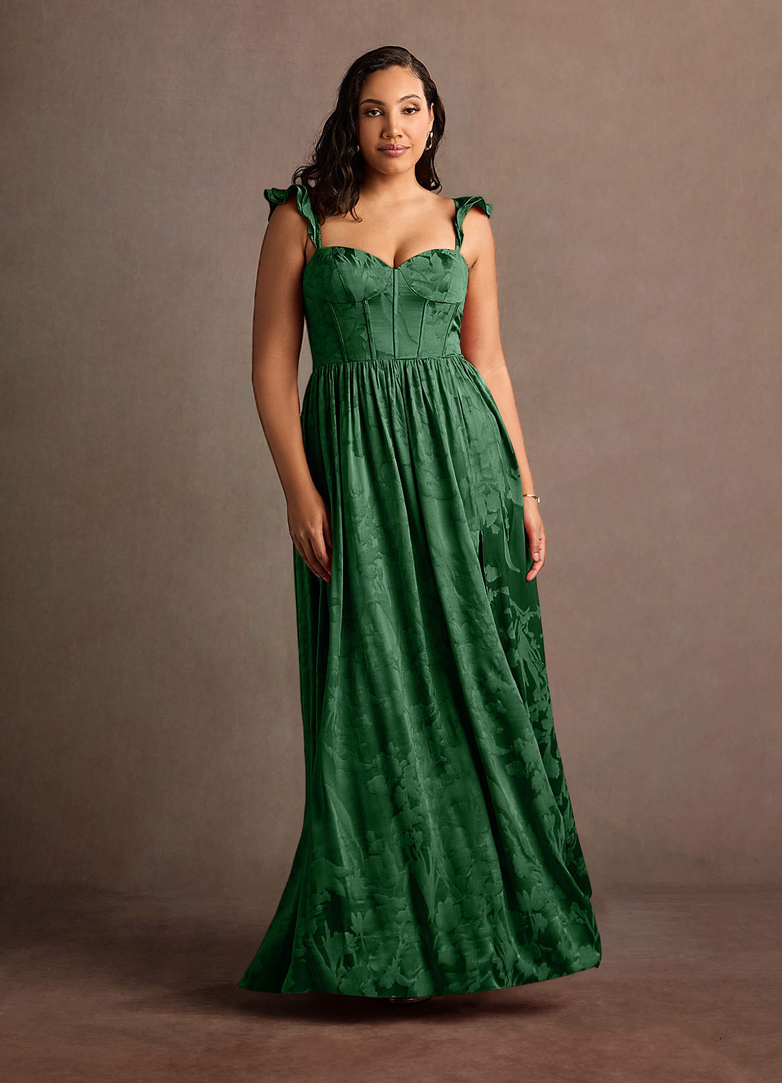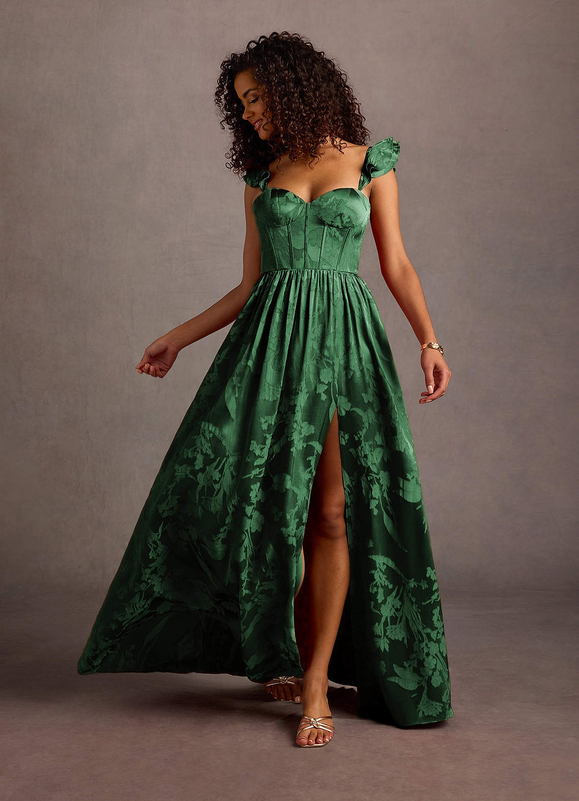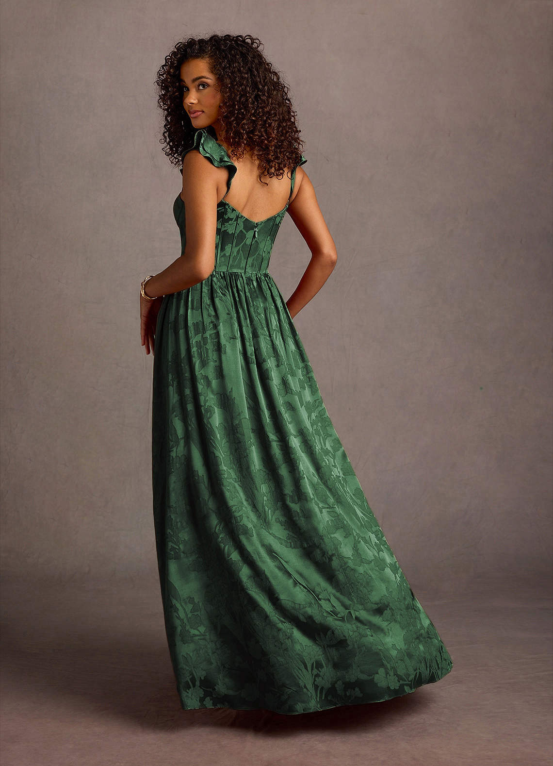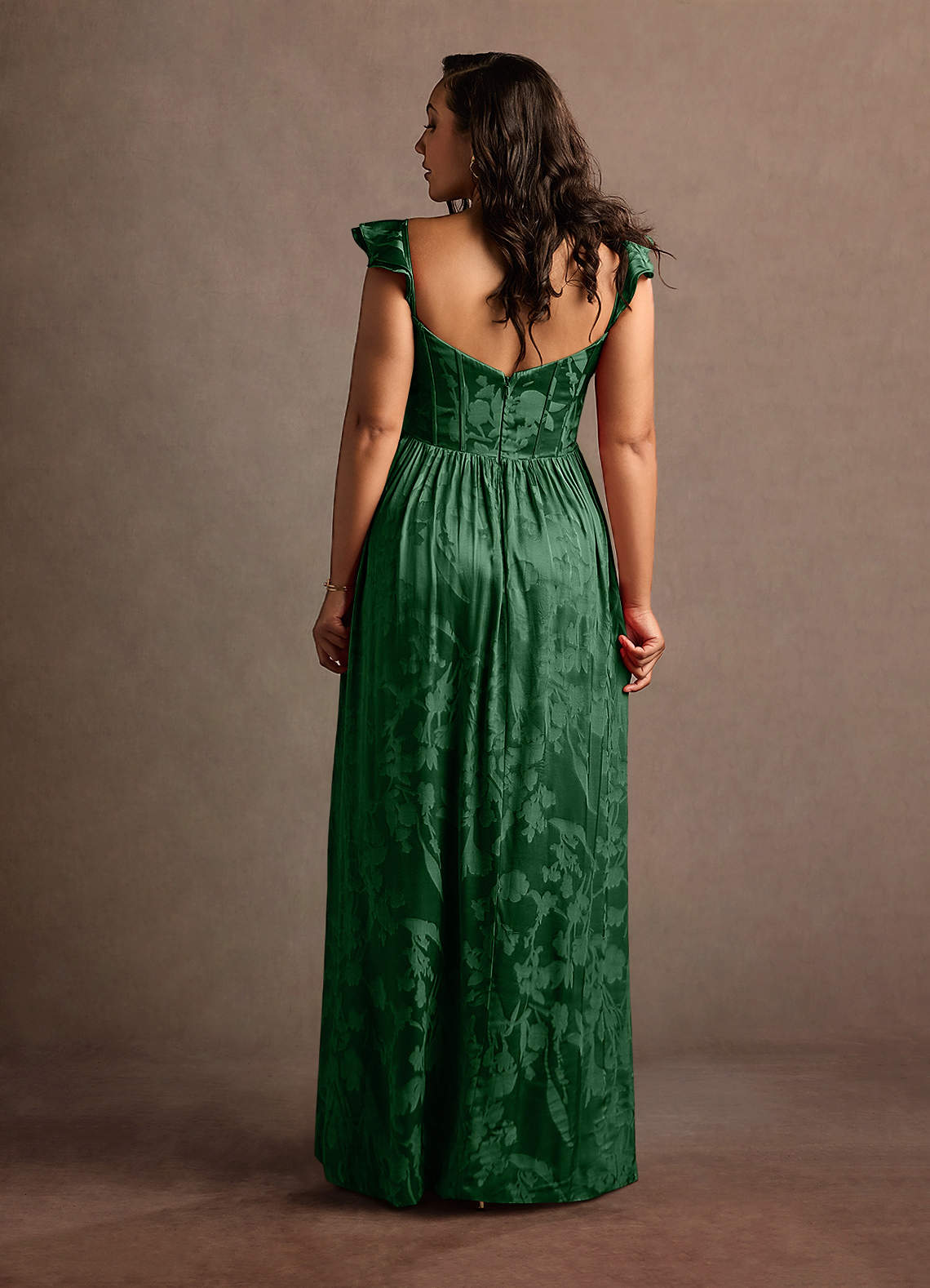 Unser Jianna Maxikleid mit flatternden Ärmeln ist aus einem wunderschönen Jacquardstoff gefertigt. Es hat einen herzförmigen Ausschnitt, romantische flatternde Ärmel und einen offenen Rücken. Tragen Sie dieses Kleid bei Ihrer nächsten formellen Veranstaltung oder Hochzeitsfeier.