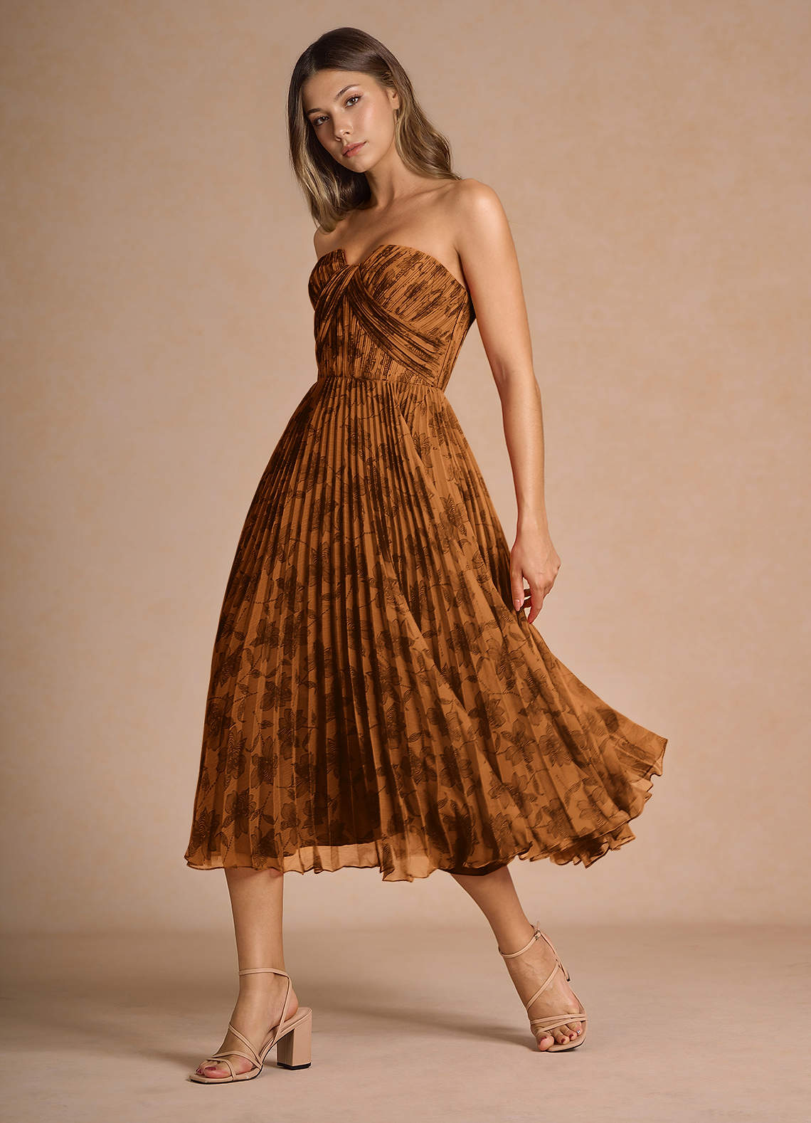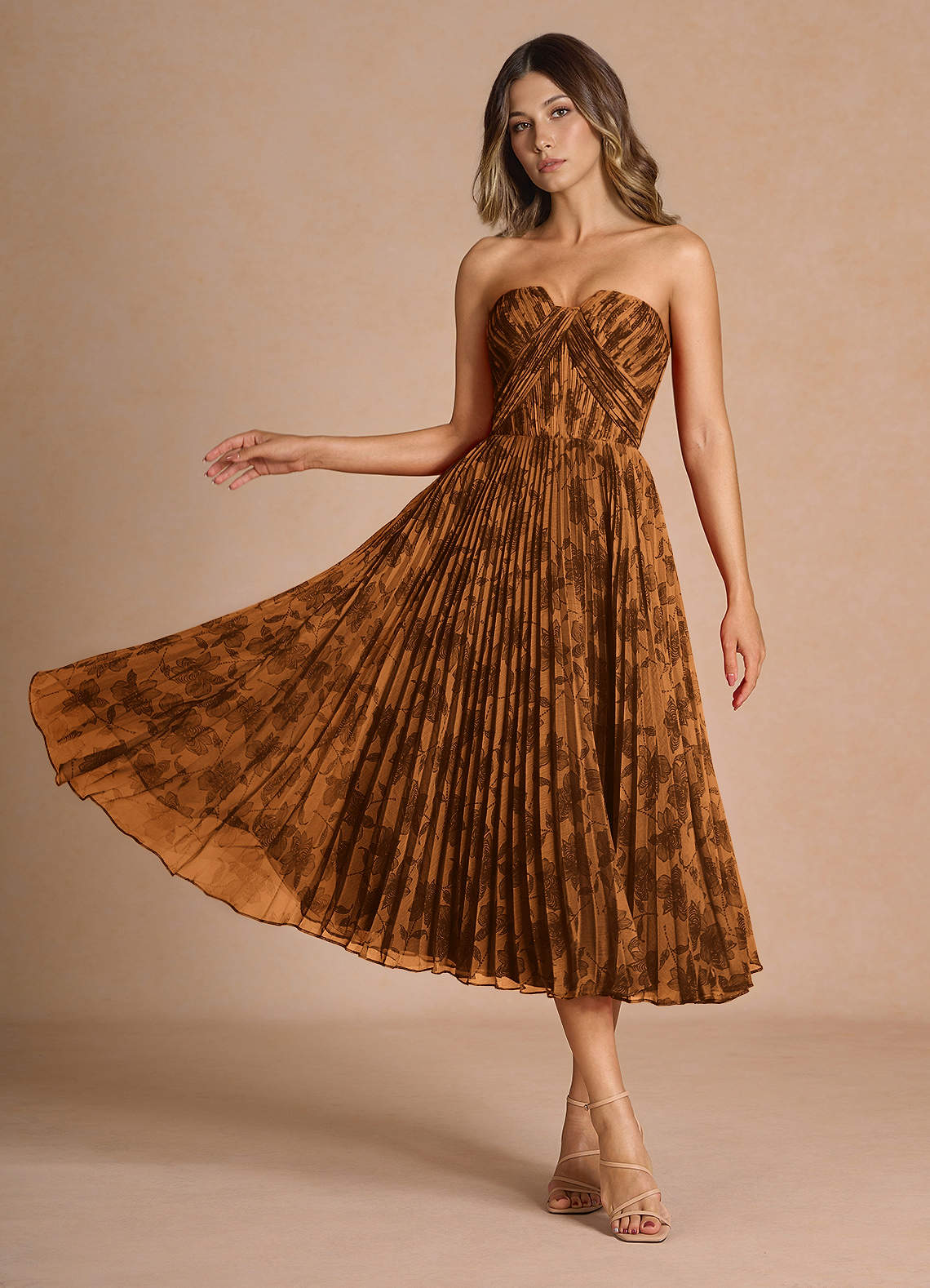 Spitzen-A-Linien-Kleid aus Chiffon mit Polka Dots in Midilänge und Richtungsfalten, die die Taille betonen und die Kurven betonen. Leicht und elegant, perfekt für Urlaub und Cocktailpartys.