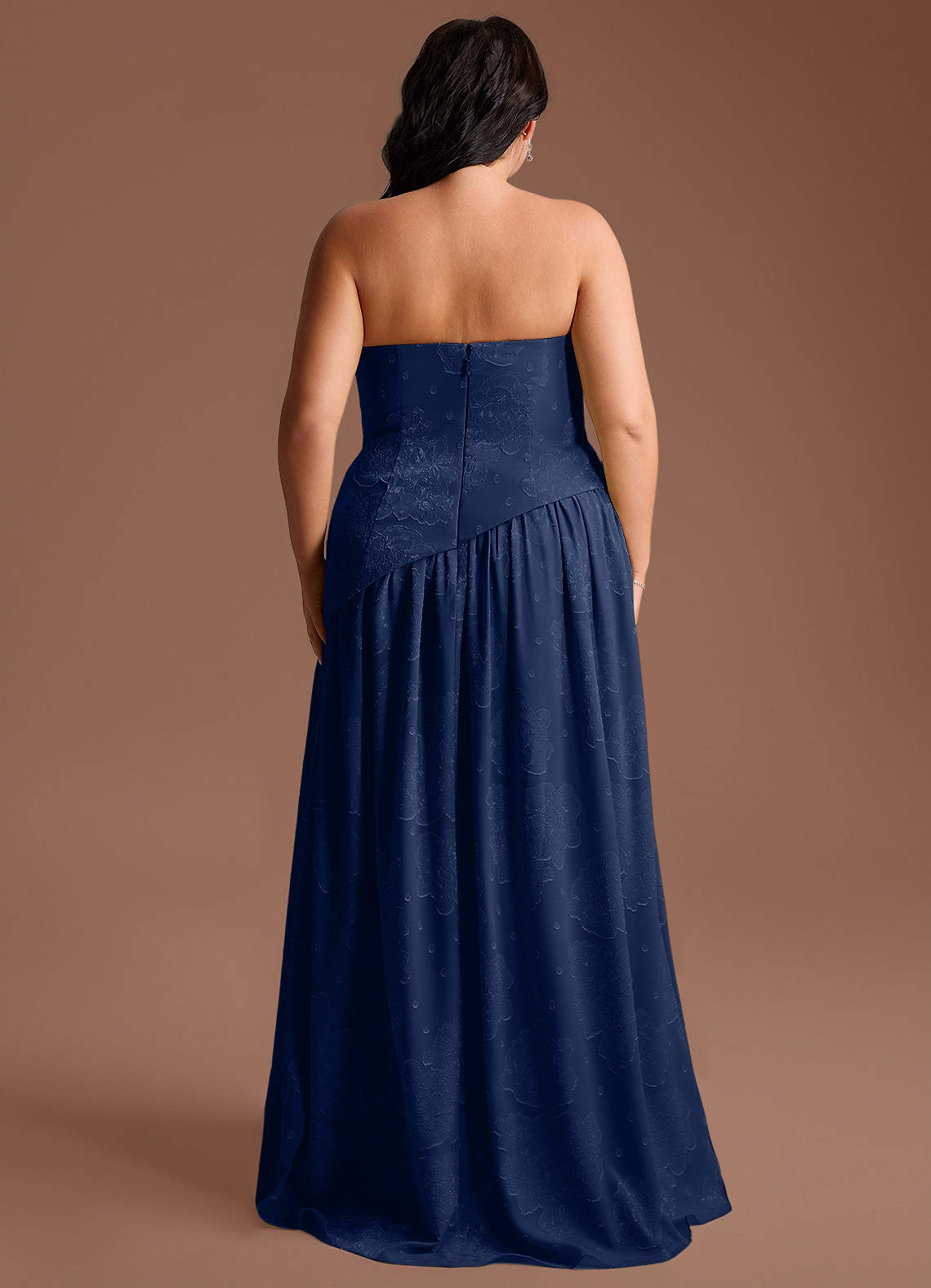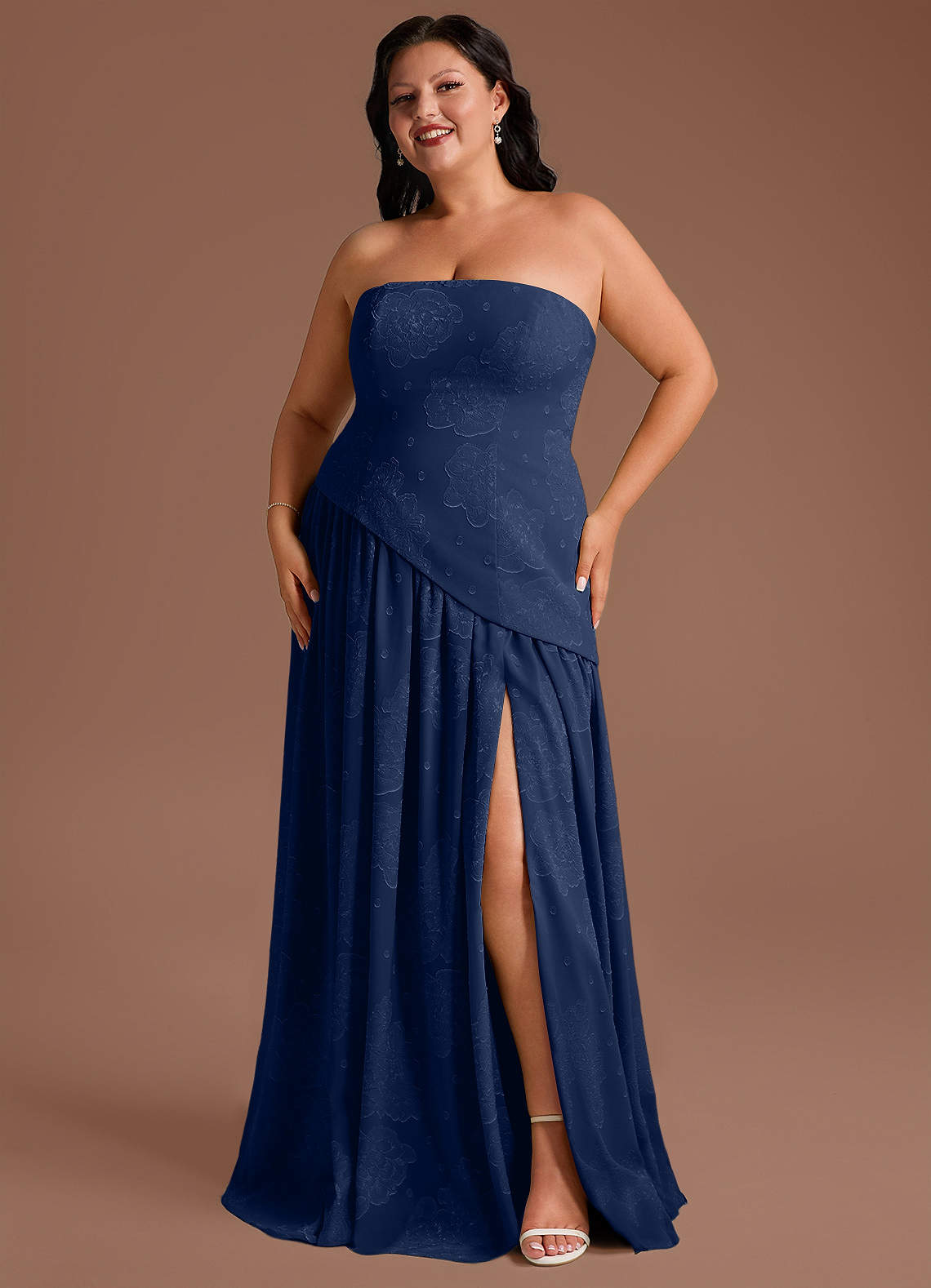 Ziehen Sie mit Marcella alle Blicke auf sich. Das architektonische Chiffon-Ausbrennerkorsett formt Ihre Silhouette, während der gewagte, oberschenkelhohe Schlitz kaskadenartige Falten freigibt, die wie Morgennebel schweben. Ein markantes und zugleich ätherisches Statement-Piece für den roten Teppich oder wann immer Sie die Regeln der Eleganz neu definieren möchten.
