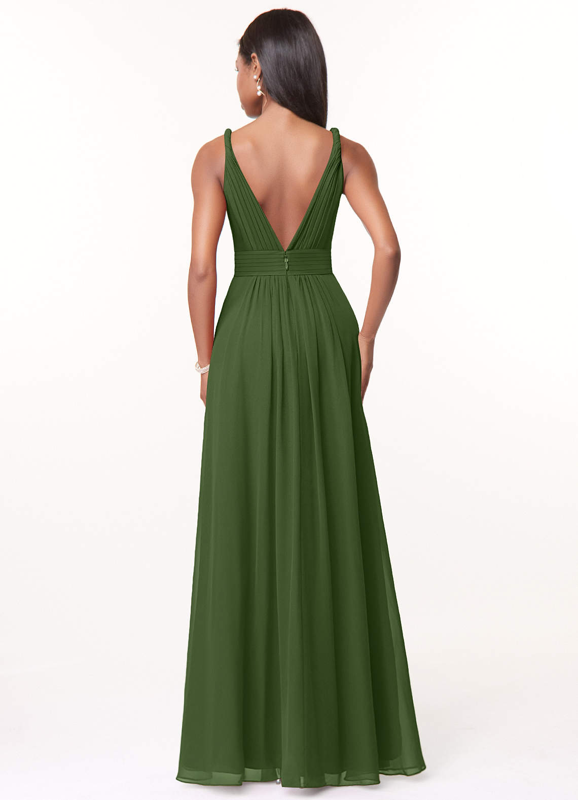 Maren ist unser bodenlanges Brautjungfernkleid im A-Linien-Schnitt. Dieses schicke Kleid aus Chiffon hat einen tiefen Ausschnitt mit romantischen Drehungen an den Trägern. Erhältlich in voller Größe (EU32-EU62) und maßgeschneiderter Größe.