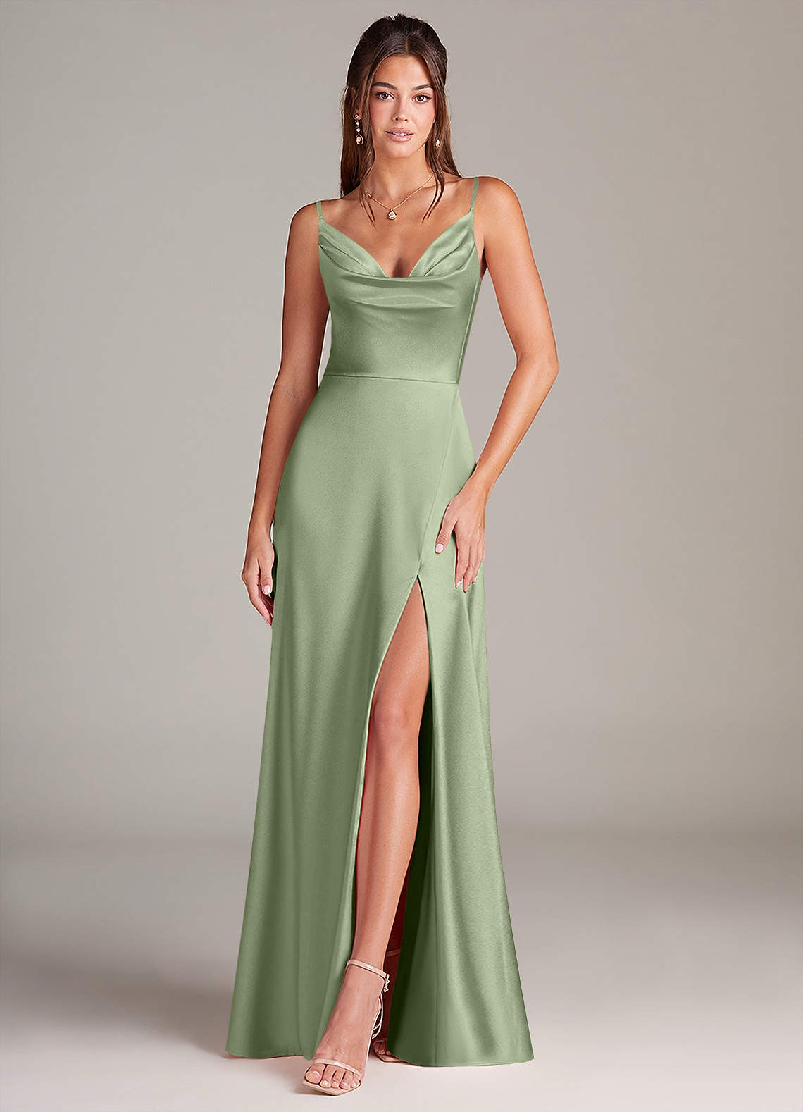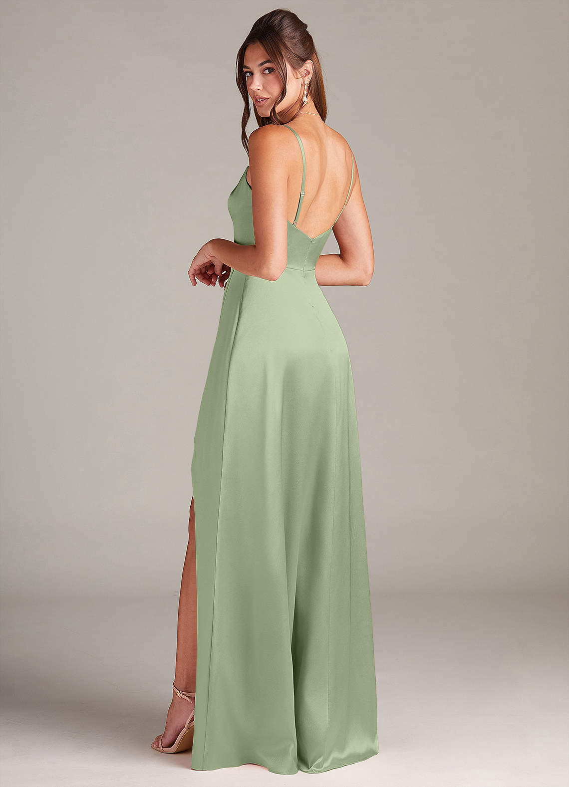 Das Sarella ist unser Traumkleid aus metallischem Satin. Es kombiniert einen V-Ausschnitt mit Wasserfallausschnitt und einen bodenlangen A-Linien-Rock mit Taschen. Fühlen Sie sich an Ihrem bevorstehenden großen Tag wunderschön im Sarella-Kleid.