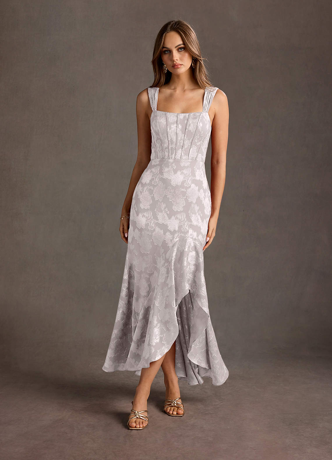 Ziehen Sie mit dem Saskia Maxikleid alle Blicke auf sich. Dieses atemberaubende Fil-Coupé-Design mit Blumenmuster verfügt über einen quadratischen Ausschnitt, dicke Schulterträger und einen asymmetrischen Rüschenrock. Der perfekte Stil für einen romantischen Abend oder einen besonderen Anlass.
