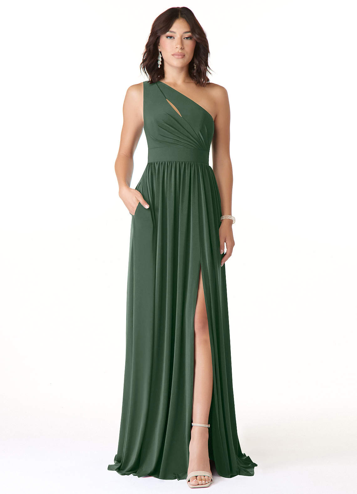Jasna ist unser schickes und verführerisches Luxus-Strickkleid. Sie hat einen wunderschönen One-Shoulder-Ausschnitt und ein schmeichelhaftes Schlüsselloch. Ihre Rüschen erstrecken sich über das Oberteil und bis in den A-Linien-Rock. Dieses Kleid hat auch Taschen.