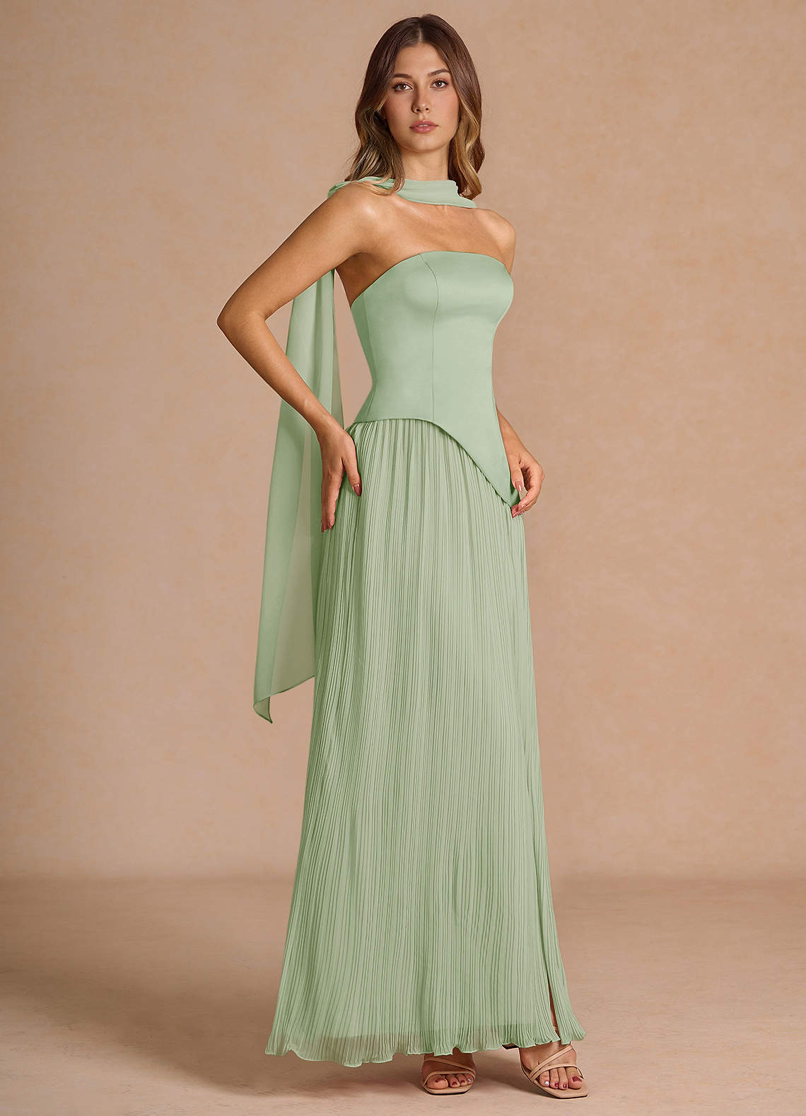 Das Tierney Kleid besticht durch seine trägerlose Silhouette (abnehmbare Träger inklusive) und betont Ihre Kurven mit einer konturierten Taille und einem verspielten, kaskadenförmigen Faltenrock. Dieses Kleid vereint Raffinesse und Verspieltheit und lädt zu glamourösen Abenden ein – jeder Schritt strahlt zeitlose Eleganz aus.