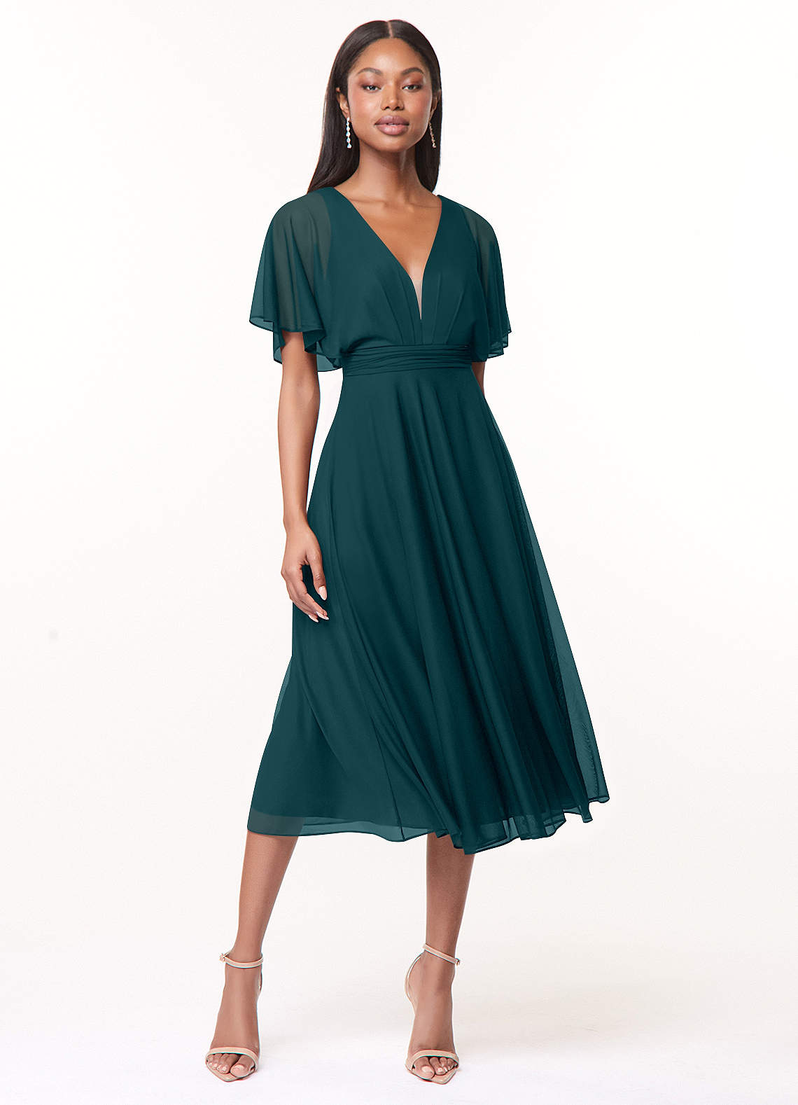Tinsley ist die perfekte Mischung aus Vintage-Glamour und Weiblichkeit! Die trendigen vollen Ärmel, die geraffte Taille und der tiefe Rücken ermöglichen es Ihnen, diskret mit einem Hauch von Sexiness zu sein! Der volle Rock in Teelänge ist perfekt für eine Gartenparty oder jeden besonderen Anlass.