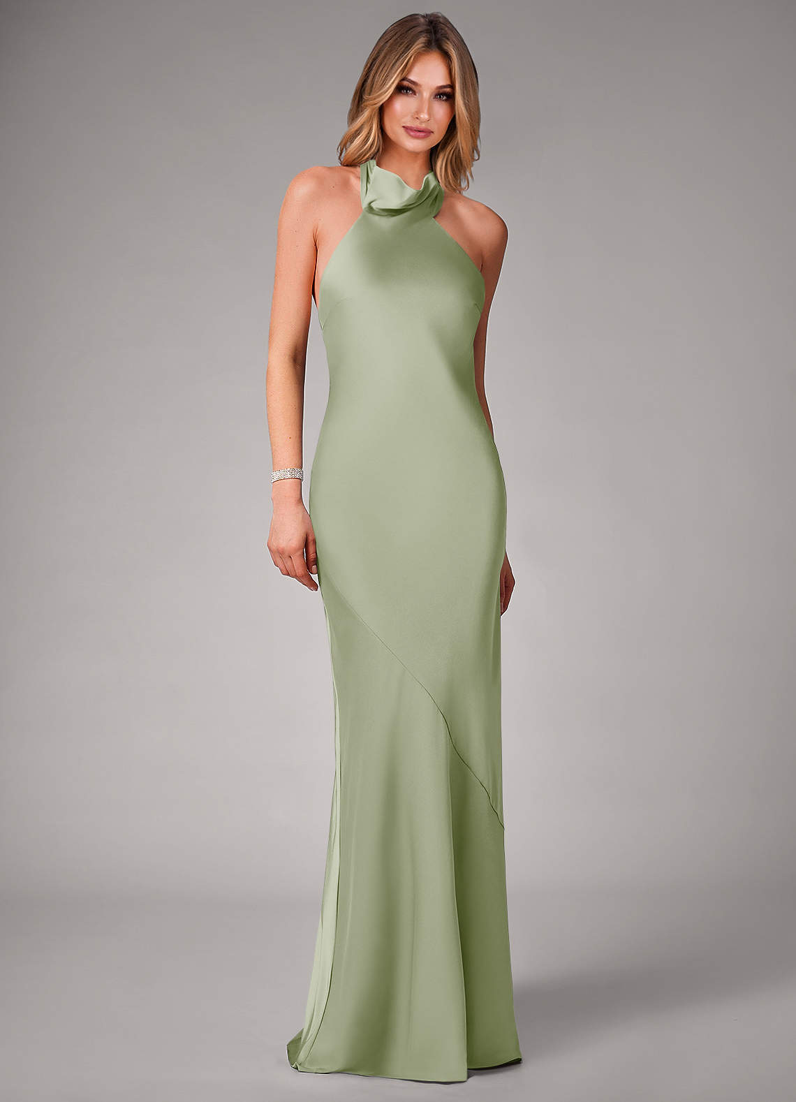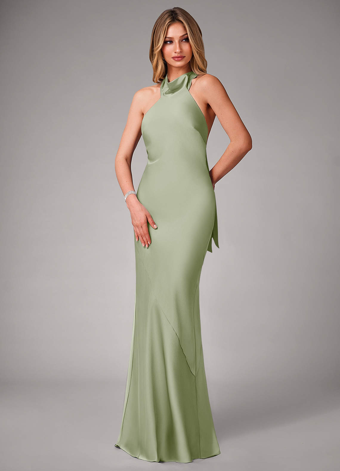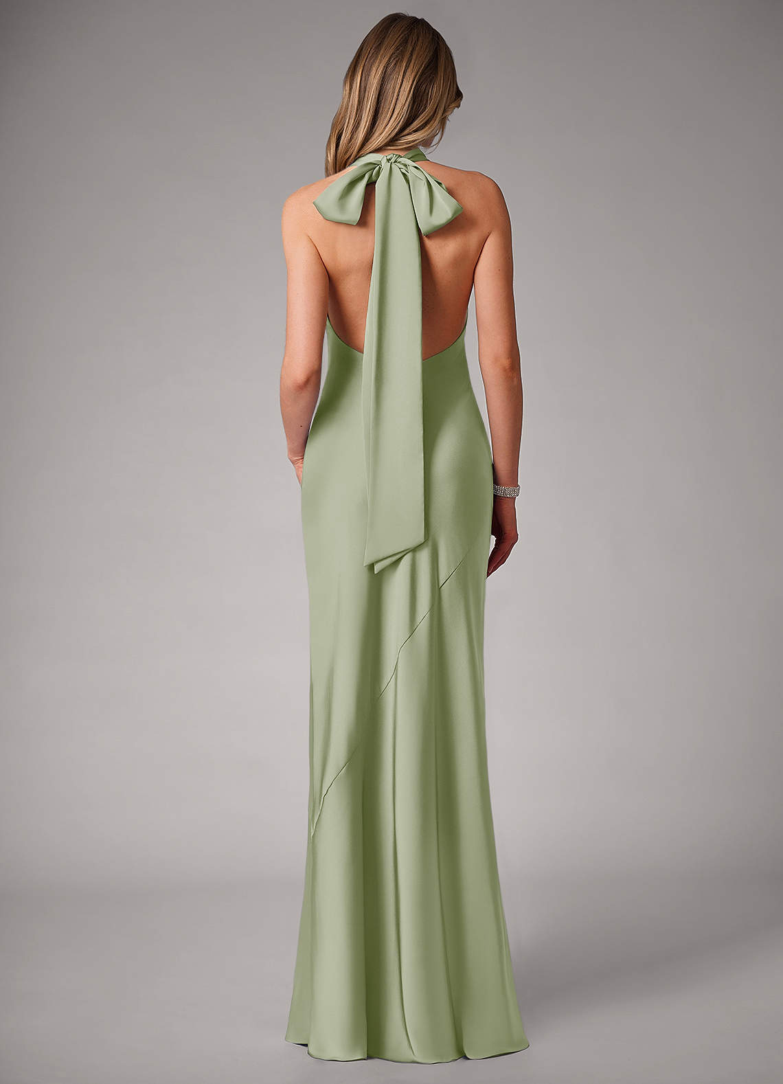 Dieses wunderschöne Modell aus Stretch-Satin besticht durch einen hohen Neckholder-Ausschnitt mit Schleife zum Binden und einen schmeichelnden Meerjungfrauenrock mit Beinschlitz. Tragen Sie dieses Schmuckstück an Ihrem nächsten großen Tag.
