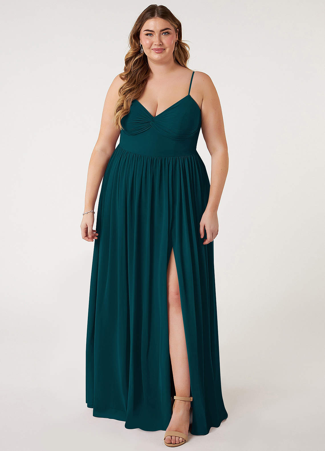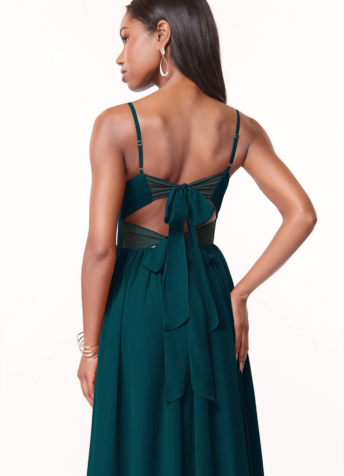 Zeya ist eine elegante Wahl für Ihre Hauptdarstellerinnen. Wir haben dieses Kleid mit unserem Chiffonstoff entworfen, einer perfekten Balance aus glänzendem Glanz und Komfort. Zeya hat einen schmeichelhaften Neckholder-Ausschnitt, der von Spaghettiträgern gehalten wird, die im Rücken gebunden werden, um ein auffälliges Detail mit offenem Rücken zu schaffen. Ihr bodenlanger Rock in A-Linie hat einen Beinschlitz, der Komfort beim Gehen bietet.
