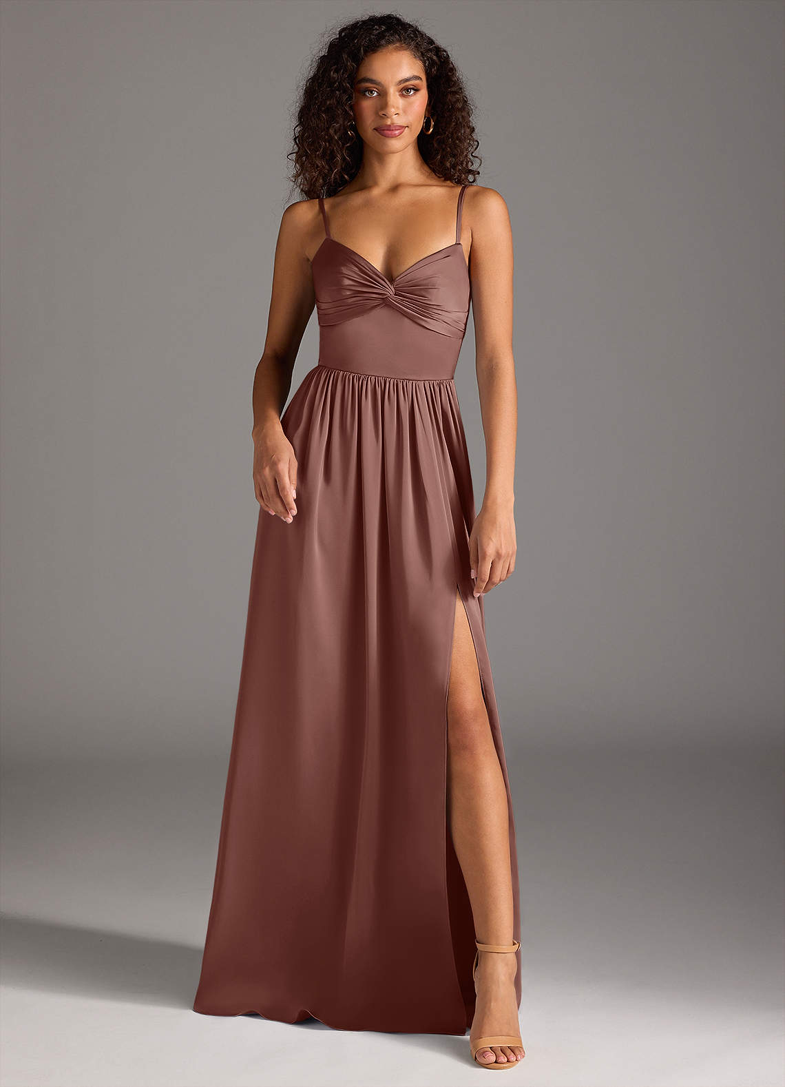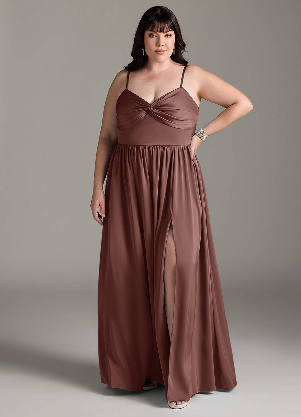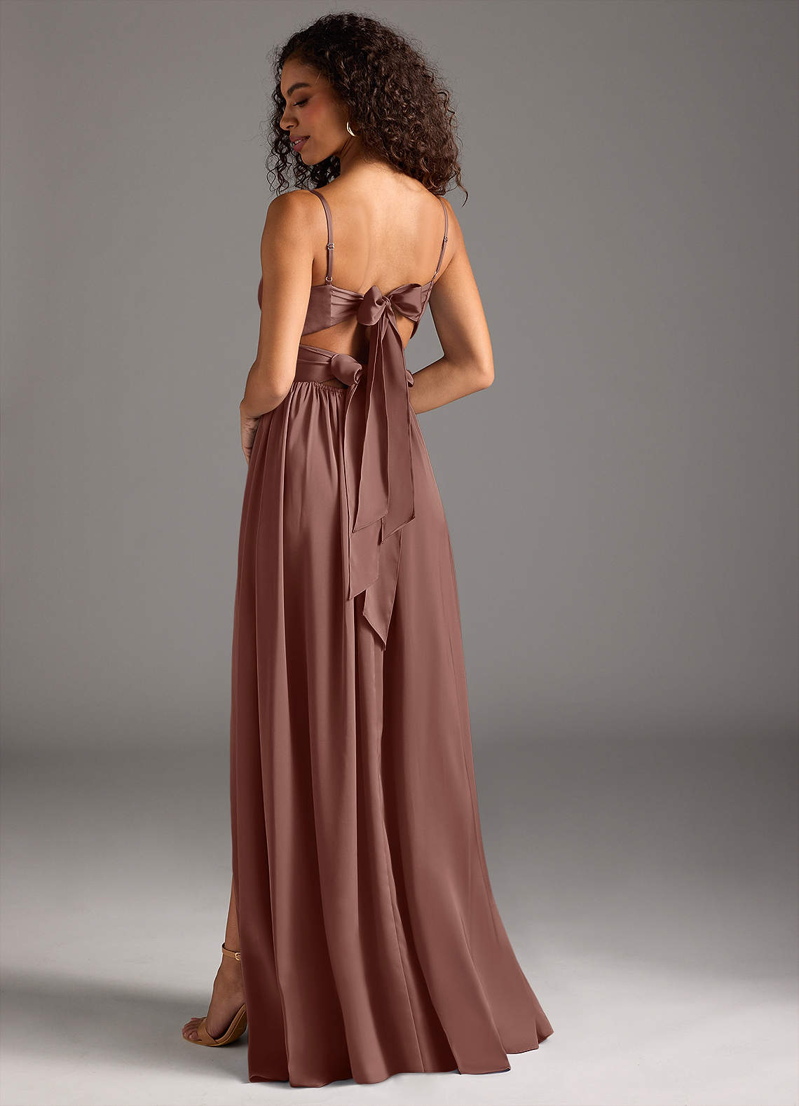 Zeya ist eine elegante Wahl für Ihre Hauptdarstellerinnen. Wir haben dieses Brautjungfernkleid aus unserem Stretch-Satinstoff entworfen, eine perfekte Balance aus glänzendem Glanz und Komfort. Zeya hat einen schmeichelnden Neckholder-Ausschnitt, der von Spaghettiträgern gehalten wird, die im Rücken gebunden werden, um einen auffälligen offenen Rücken zu schaffen. Ihr bodenlanger A-Linien-Rock hat einen Beinschlitz, der beim Gehen bequem ist.