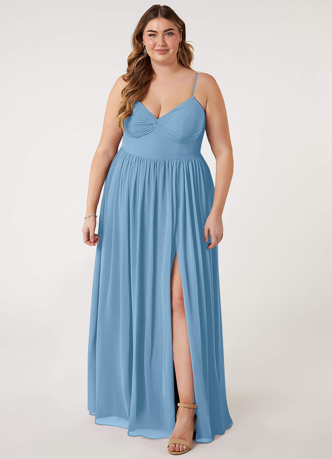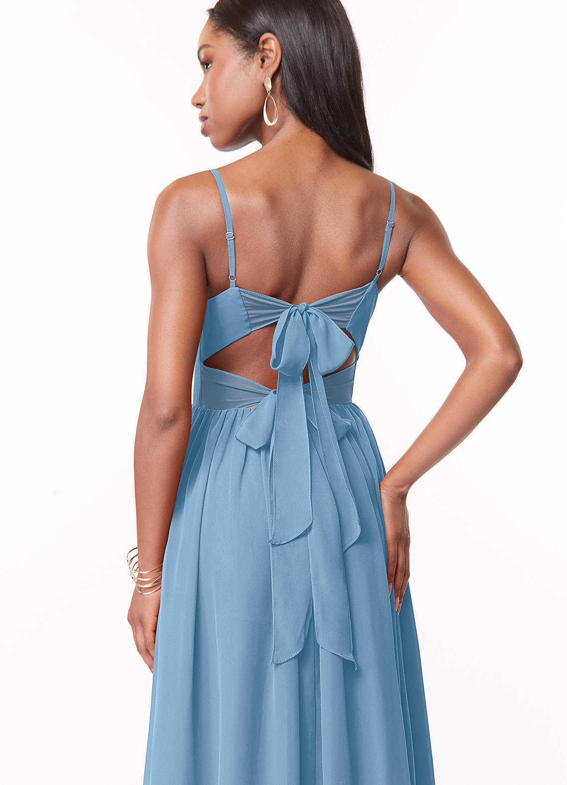 Zeya ist eine elegante Wahl für Ihre Hauptdarstellerinnen. Wir haben dieses Kleid mit unserem Chiffonstoff entworfen, einer perfekten Balance aus glänzendem Glanz und Komfort. Zeya hat einen schmeichelhaften Neckholder-Ausschnitt, der von Spaghettiträgern gehalten wird, die im Rücken gebunden werden, um ein auffälliges Detail mit offenem Rücken zu schaffen. Ihr bodenlanger Rock in A-Linie hat einen Beinschlitz, der Komfort beim Gehen bietet.