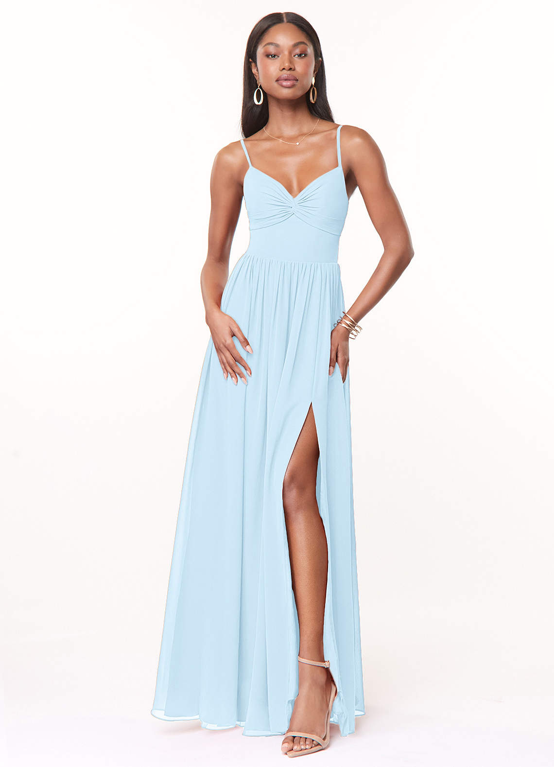 Zeya ist eine elegante Wahl für Ihre Hauptdarstellerinnen. Wir haben dieses Kleid mit unserem Chiffonstoff entworfen, einer perfekten Balance aus glänzendem Glanz und Komfort. Zeya hat einen schmeichelhaften Neckholder-Ausschnitt, der von Spaghettiträgern gehalten wird, die im Rücken gebunden werden, um ein auffälliges Detail mit offenem Rücken zu schaffen. Ihr bodenlanger Rock in A-Linie hat einen Beinschlitz, der Komfort beim Gehen bietet.