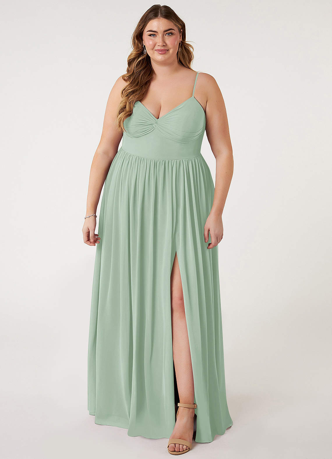 Zeya ist eine elegante Wahl für Ihre Hauptdarstellerinnen. Wir haben dieses Kleid mit unserem Chiffonstoff entworfen, einer perfekten Balance aus glänzendem Glanz und Komfort. Zeya hat einen schmeichelhaften Neckholder-Ausschnitt, der von Spaghettiträgern gehalten wird, die im Rücken gebunden werden, um ein auffälliges Detail mit offenem Rücken zu schaffen. Ihr bodenlanger Rock in A-Linie hat einen Beinschlitz, der Komfort beim Gehen bietet.