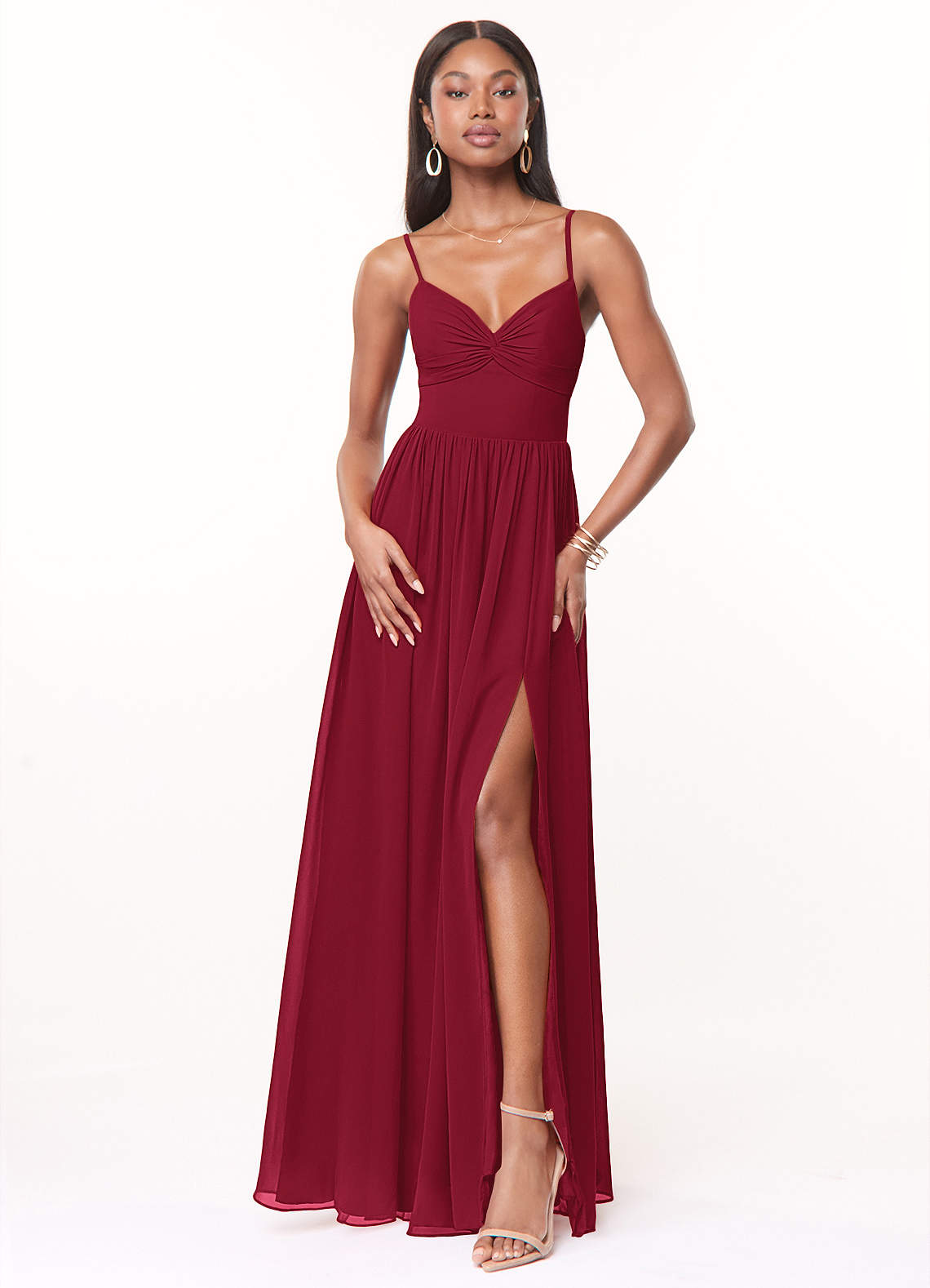 Zeya ist eine elegante Wahl für Ihre Hauptdarstellerinnen. Wir haben dieses Kleid mit unserem Chiffonstoff entworfen, einer perfekten Balance aus glänzendem Glanz und Komfort. Zeya hat einen schmeichelhaften Neckholder-Ausschnitt, der von Spaghettiträgern gehalten wird, die im Rücken gebunden werden, um ein auffälliges Detail mit offenem Rücken zu schaffen. Ihr bodenlanger Rock in A-Linie hat einen Beinschlitz, der Komfort beim Gehen bietet.